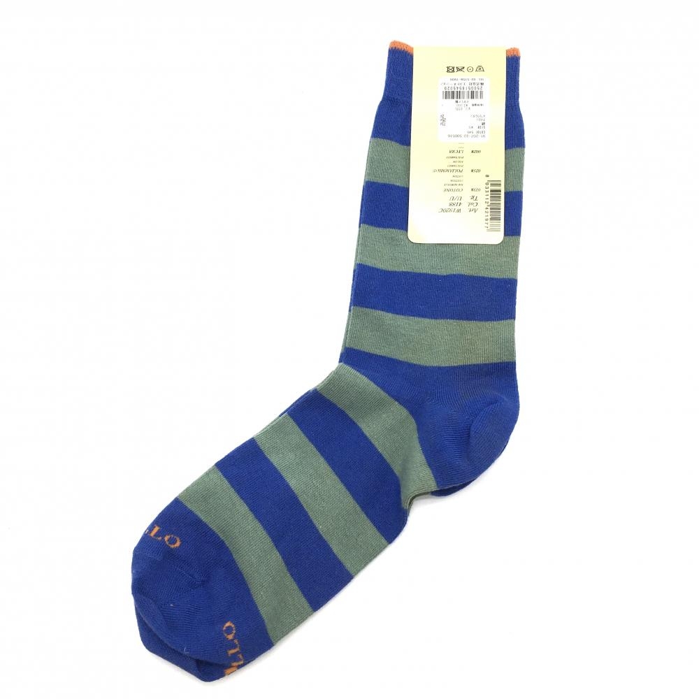 【新品】ガッロ ソックス ブルー×グリーン ボーダー イタリア製 メンズ XS ゴルフウェア GALLO