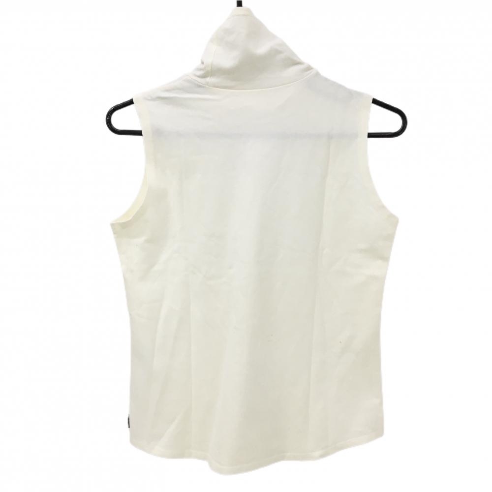 【美品】ヒールクリーク ノースリーブハイネックシャツ 白×黒 フロントロゴ レディース 40(M) ゴルフウェア Heal Creek