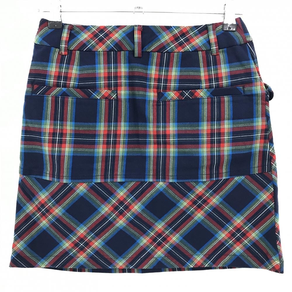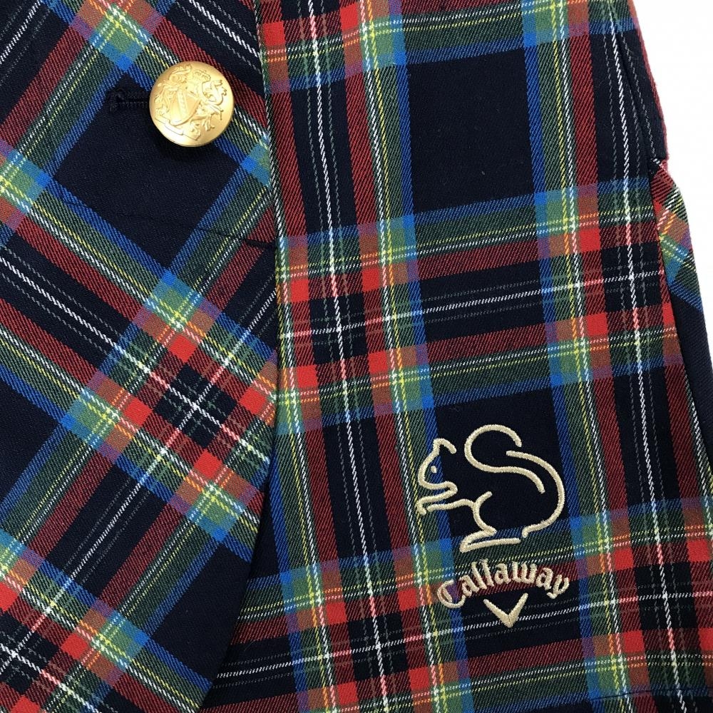 【超美品】キャロウェイ スカート ネイビー×マルチカラー チェック柄 裾ロゴ刺しゅう リス レディース SS ゴルフウェア Callaway