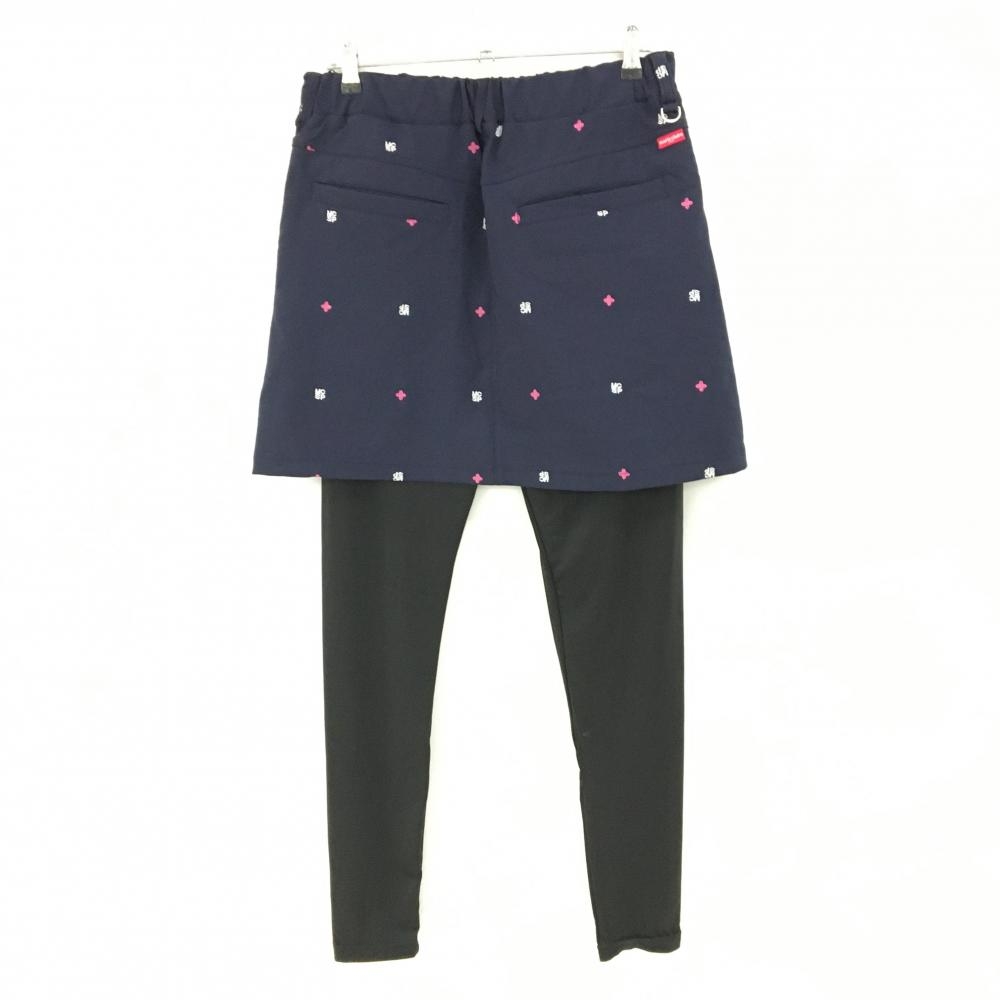 【超美品】マリクレールスポール レギンス付きスカート ネイビー×黒 スカート総柄 ウエストゴム レディース LL ゴルフウェア marie claire
