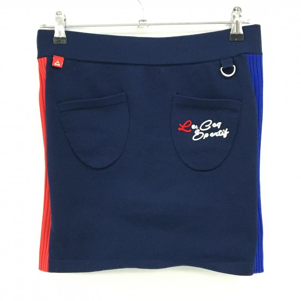 ルコックゴルフ ニットスカート ネイビー×レッド 裾ロゴ刺しゅう ウエストゴム レディース 11 ゴルフウェア le coq sportif