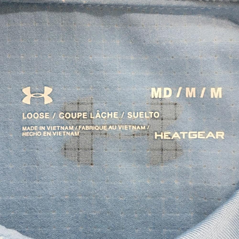 【超美品】アンダーアーマー 半袖ポロシャツ ライトブルー 細目格子柄地模様 メッシュ調 メンズ MD/M/M ゴルフウェア UNDER ARMOUR