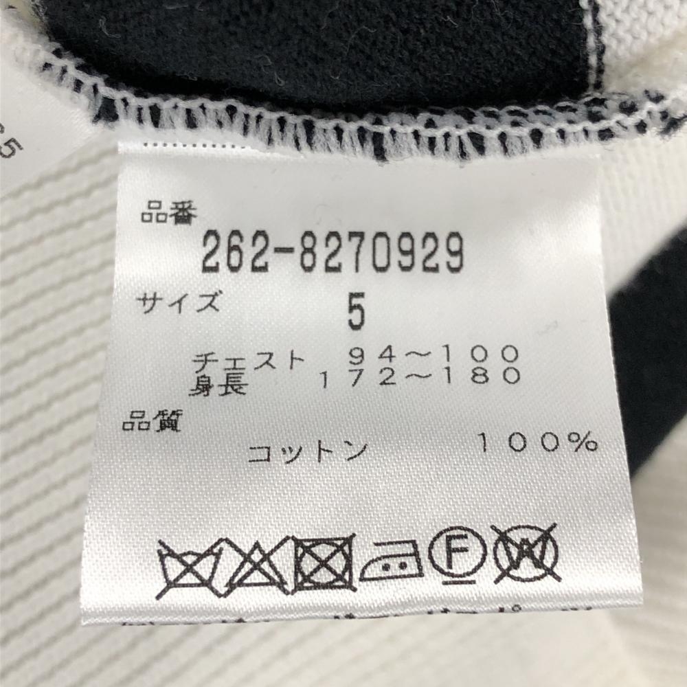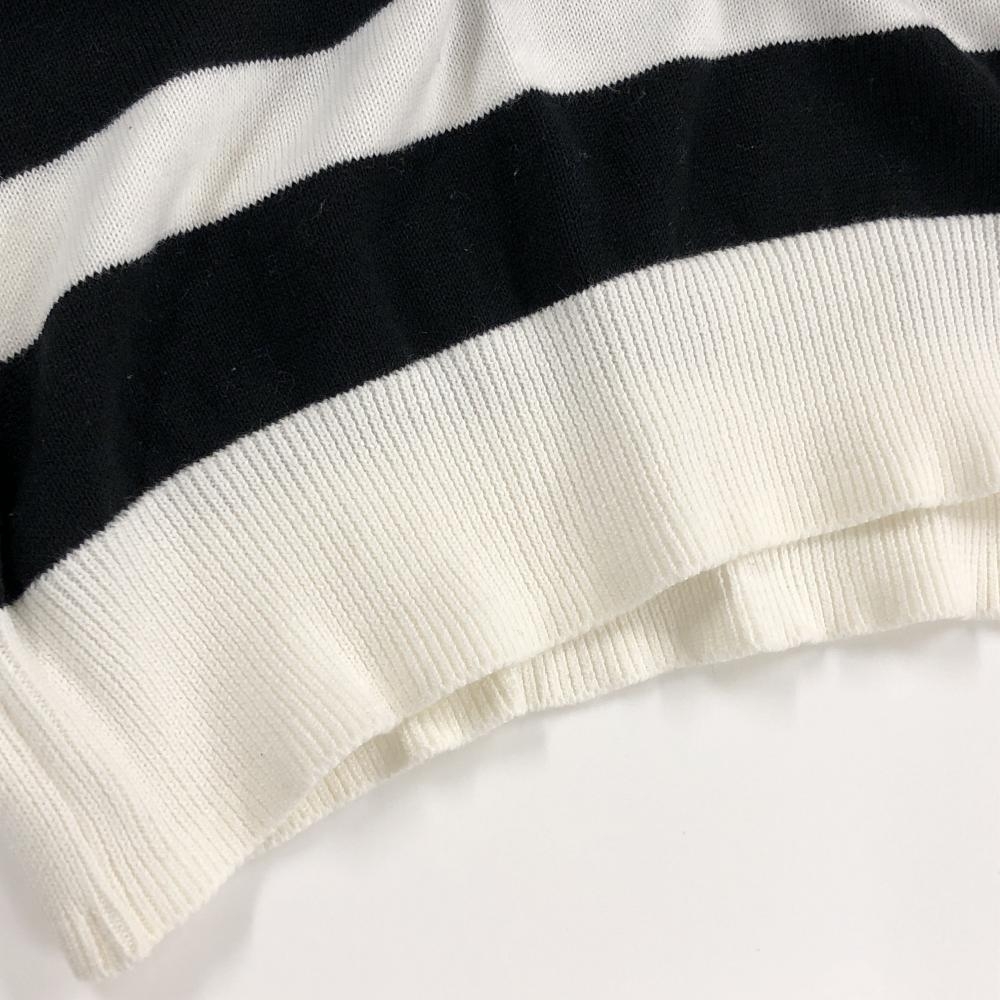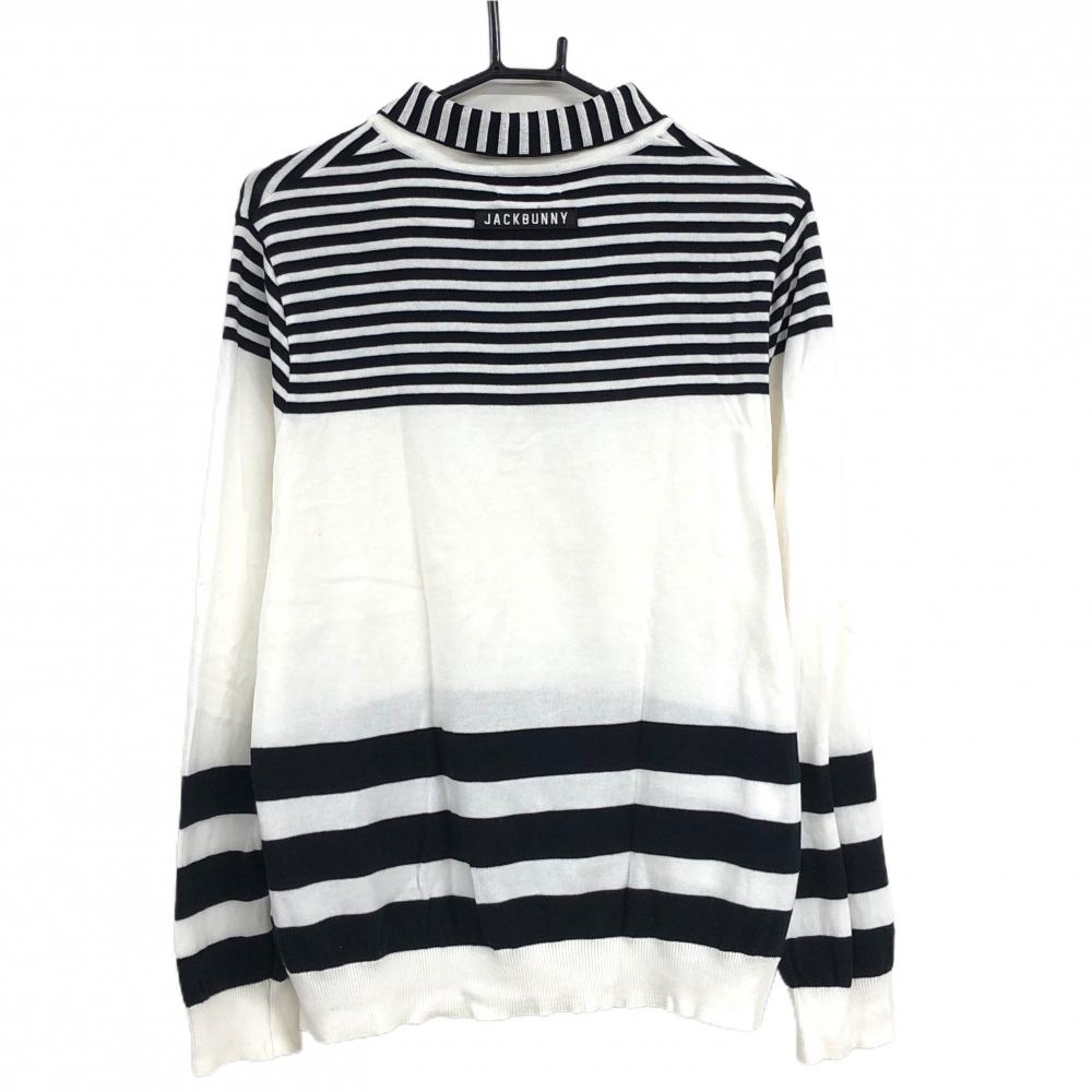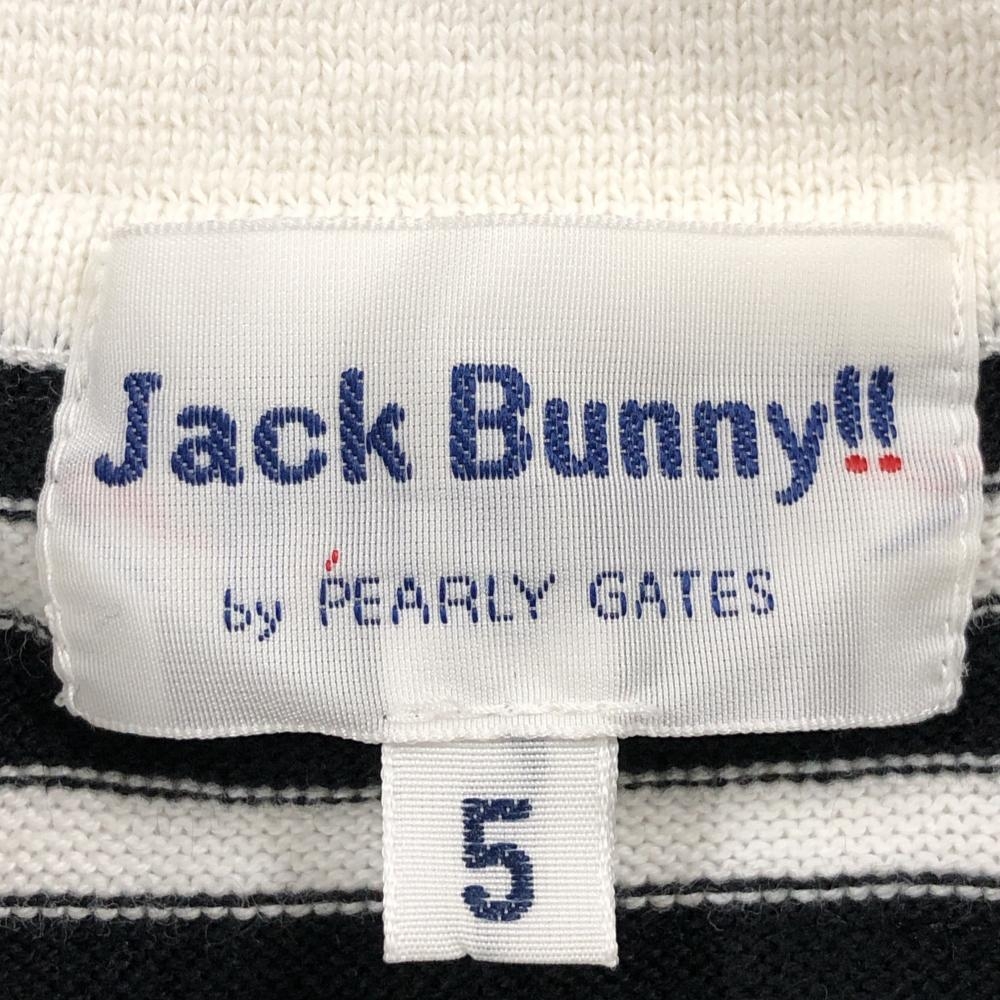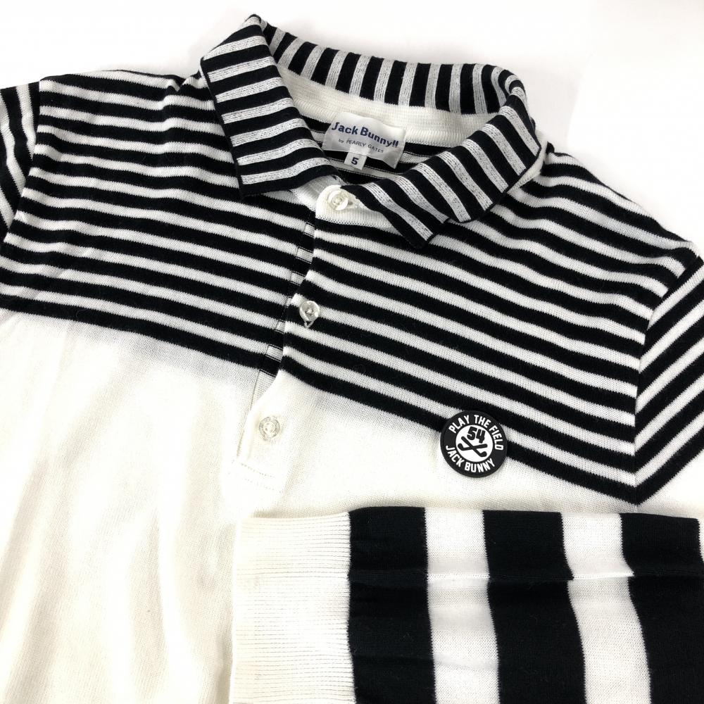【美品】ジャックバニー 長袖ポロシャツ 白×黒 ボーダー ニット地 ロゴシリコンワッペン メンズ 5(L) ゴルフウェア Jack Bunny