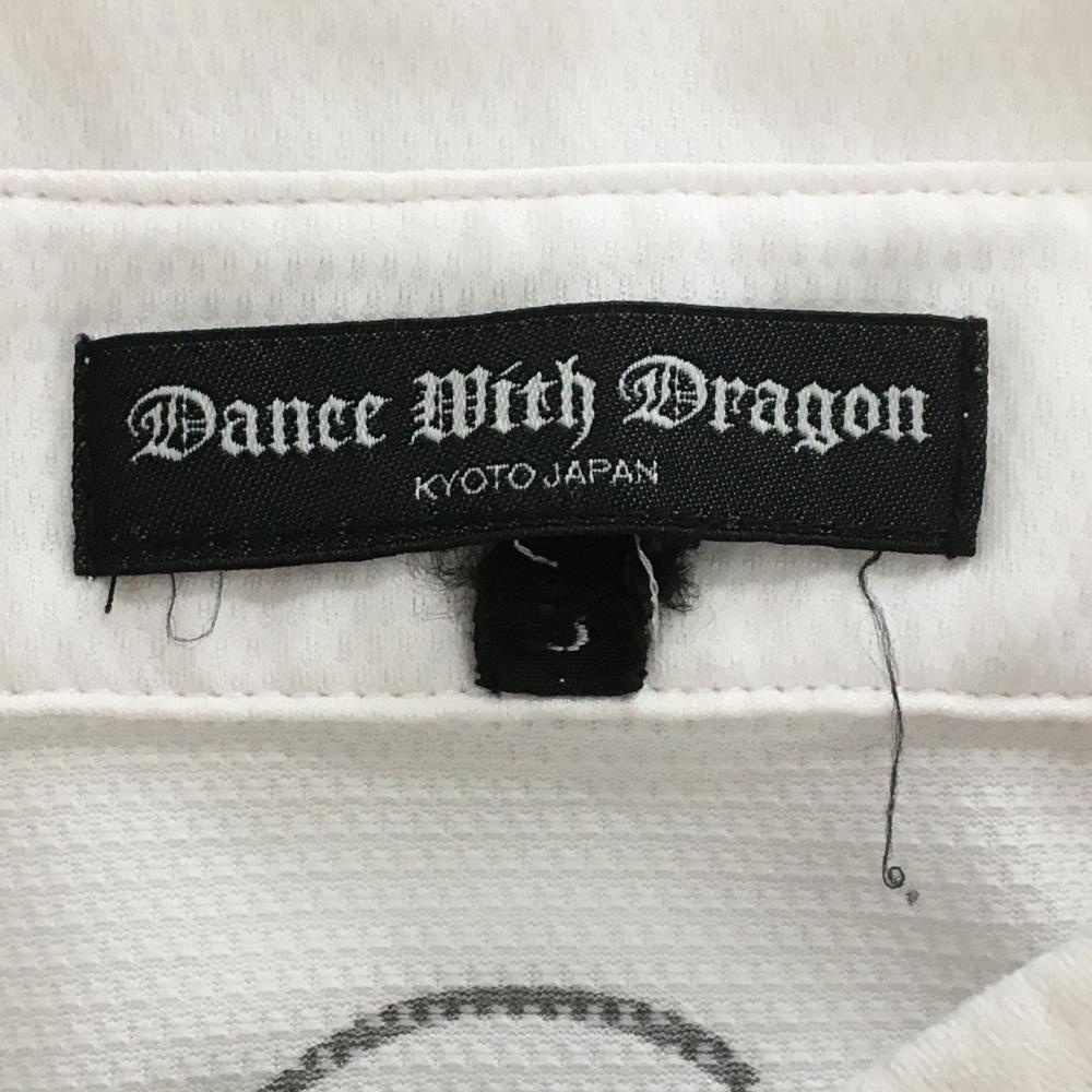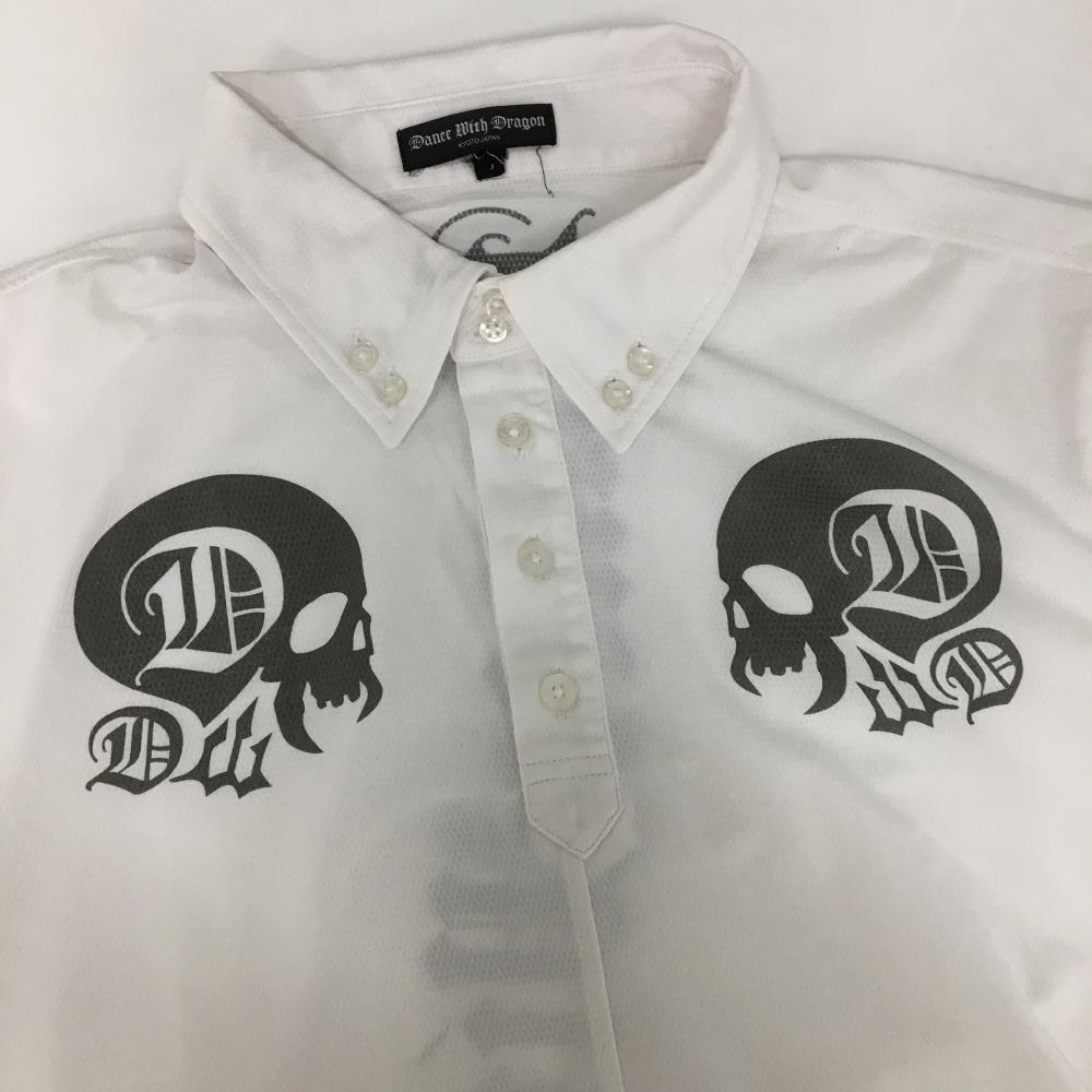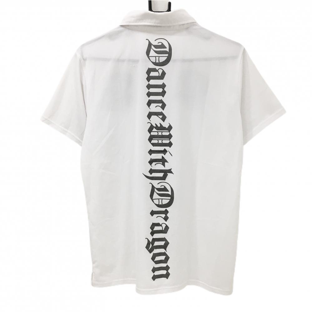 【美品】ダンスウィズドラゴン 半袖ポロシャツ 白×グレー 胸スカル ボタンダウン メンズ 3(L) ゴルフウェア Dance With Dragon