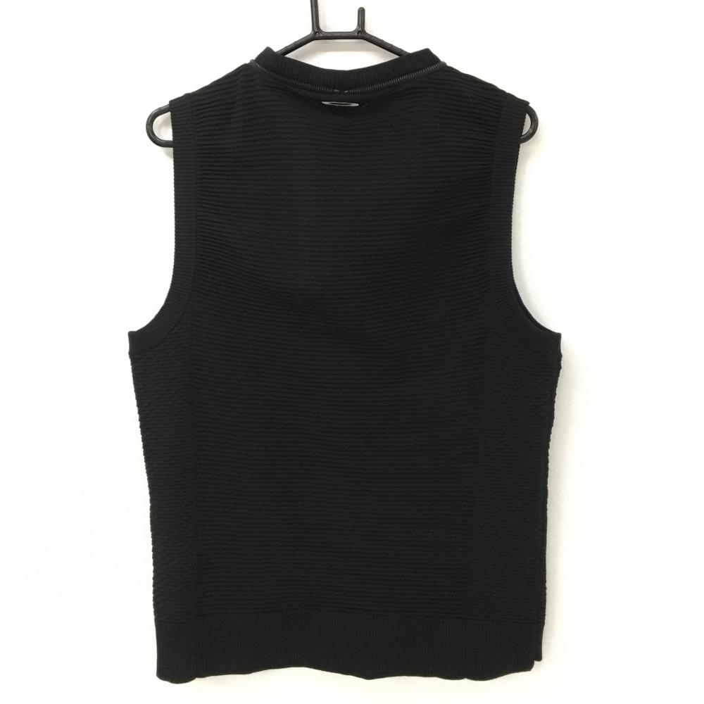【超美品】オークリー ニットジップベスト 黒 凸凹ボーダー スカル メンズ L ゴルフウェア Oakley