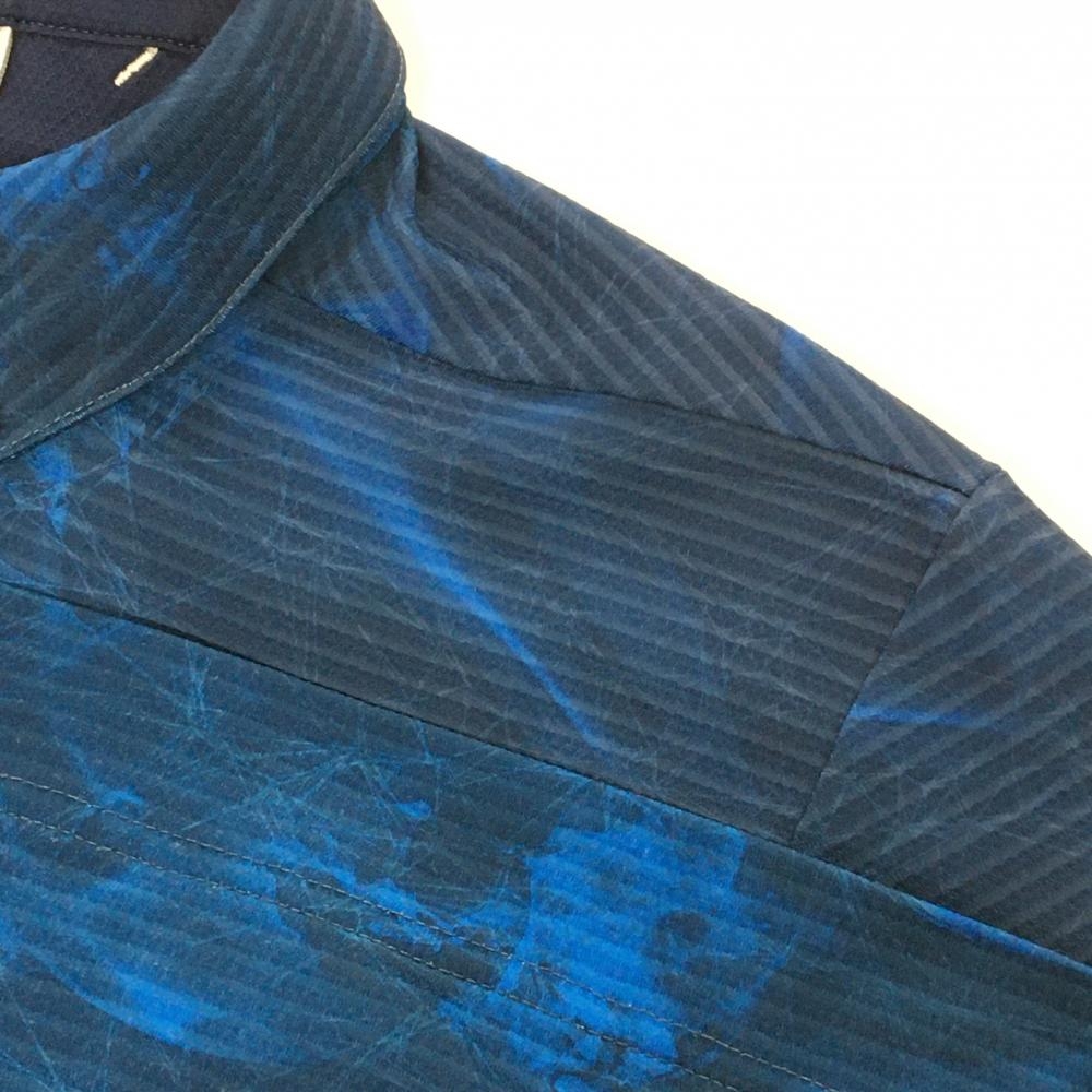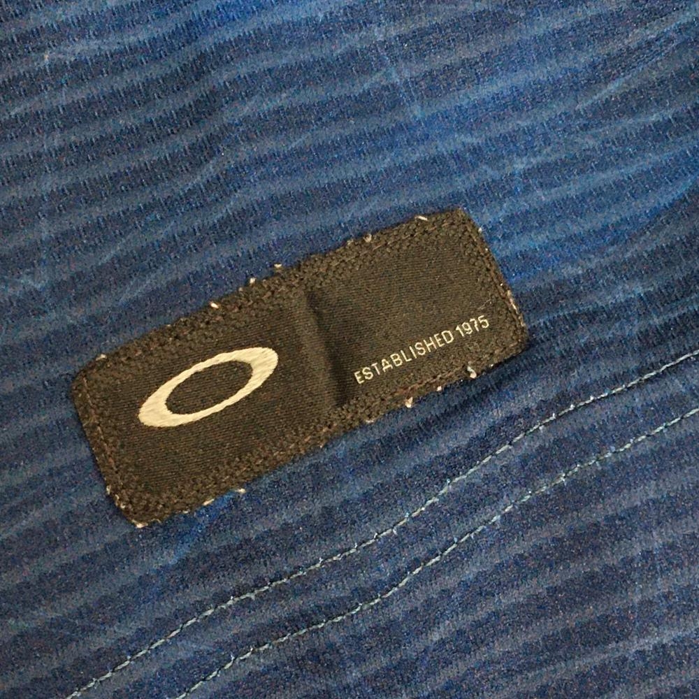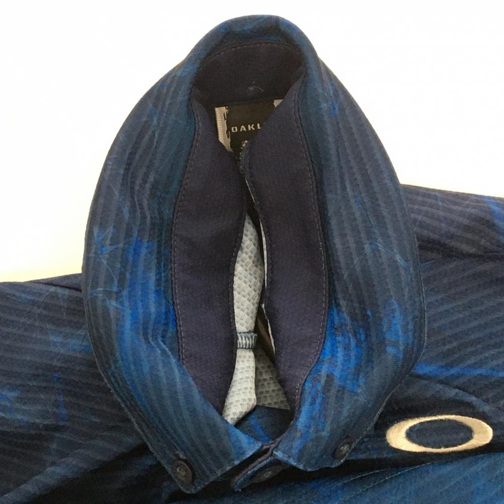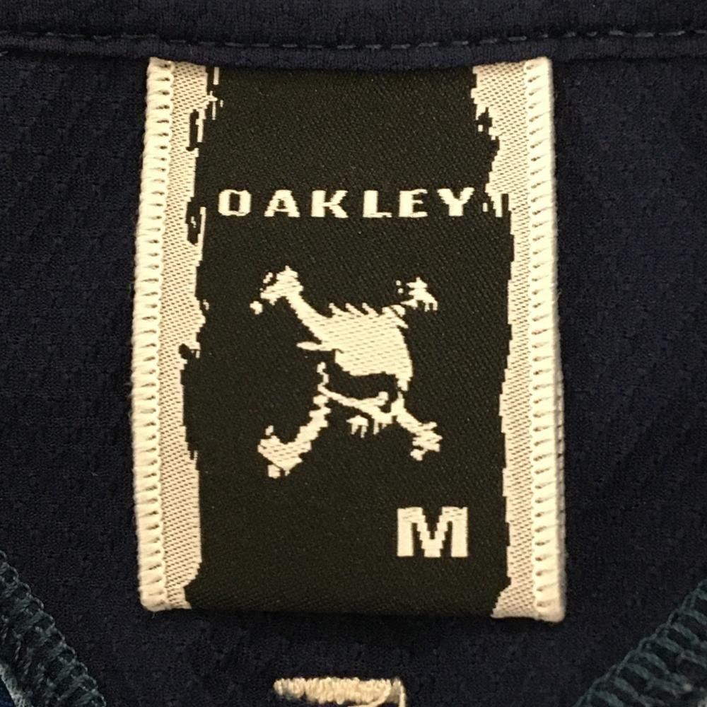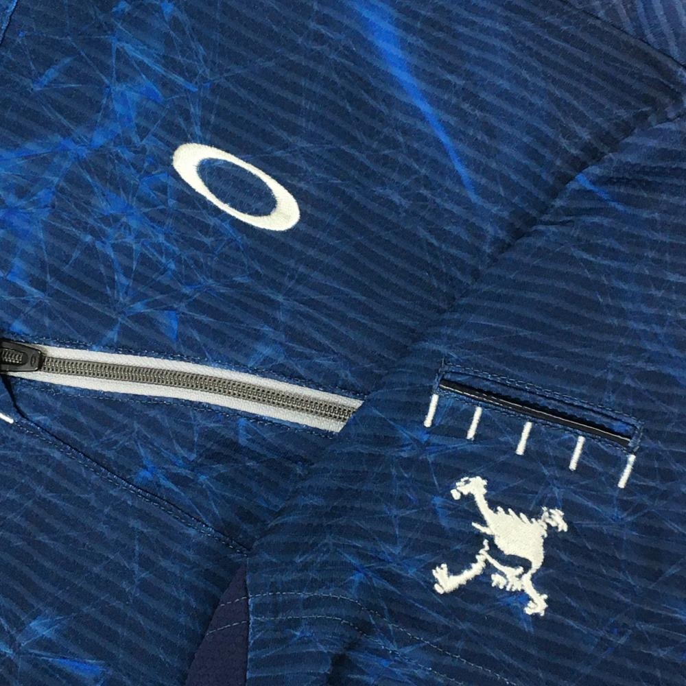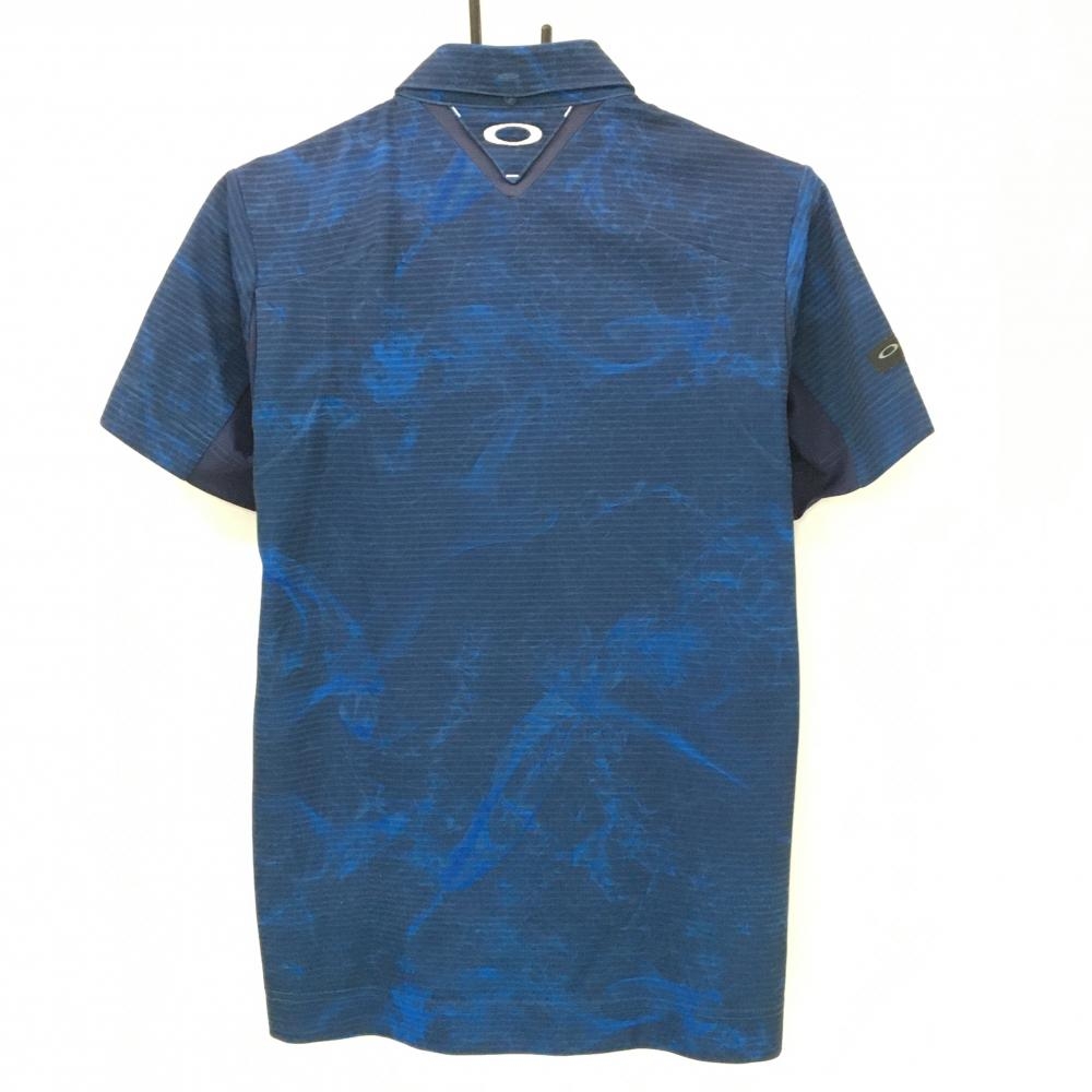 オークリー 半袖ポロシャツ ネイビー×青 総柄 スカル刺しゅう ティー装着可 ボタンダウン メンズ M ゴルフウェア Oakley