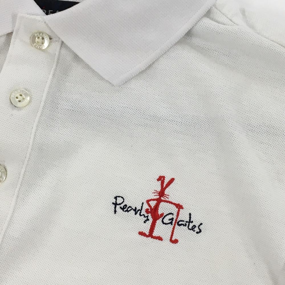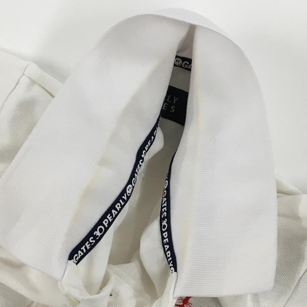 パーリーゲイツ 半袖ポロシャツ 白×レッド×ネイビー 胸ロゴ 30周年 メンズ 4(M) ゴルフウェア PEARLY GATES