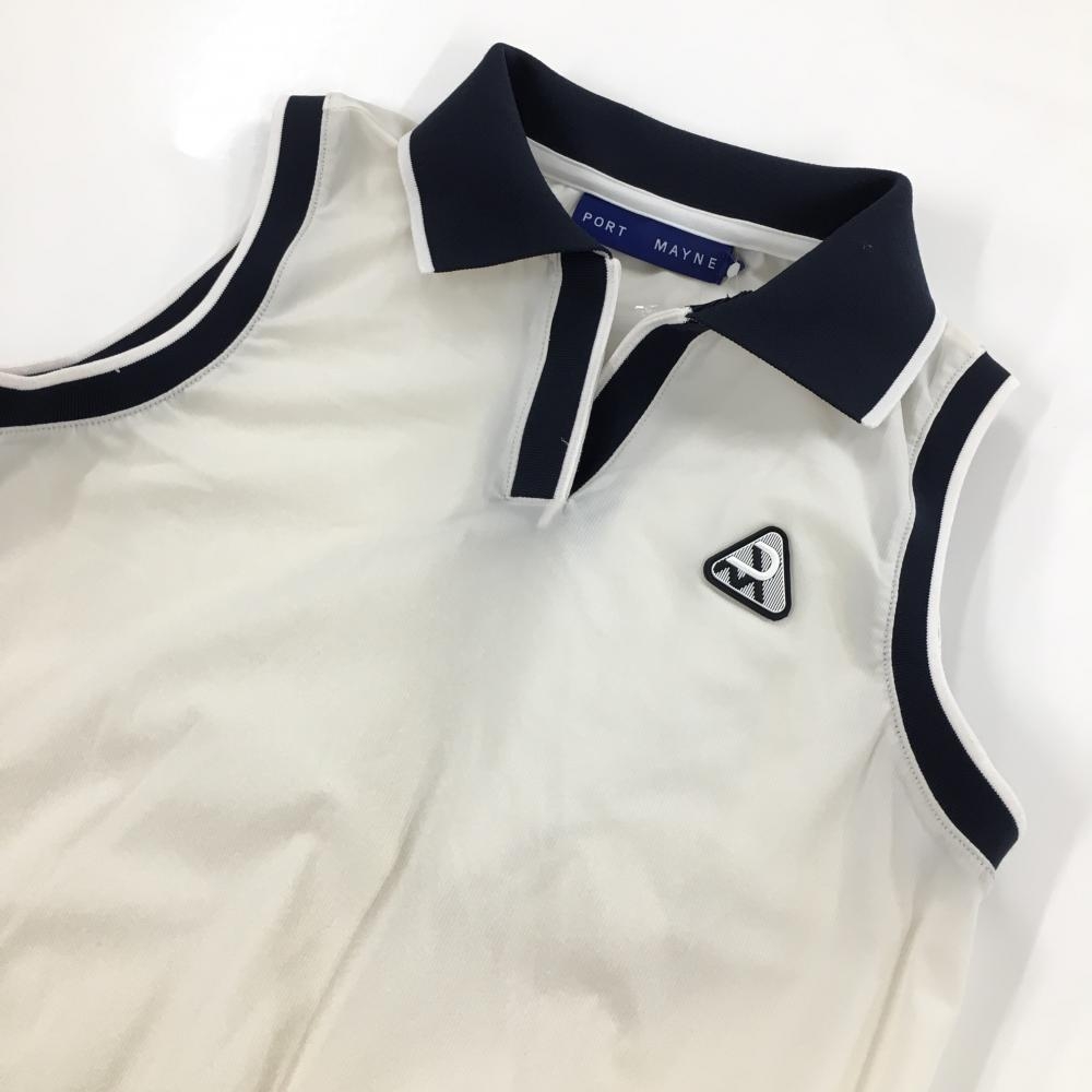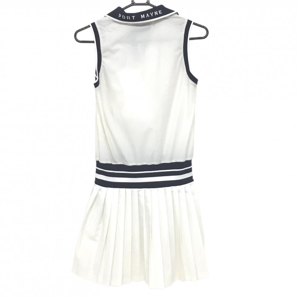 【美品】ポートメイン ノースリーブポロワンピース 白×ダークネイビー インナーパンツ付き レディース S ゴルフウェア PORT MAYNE
