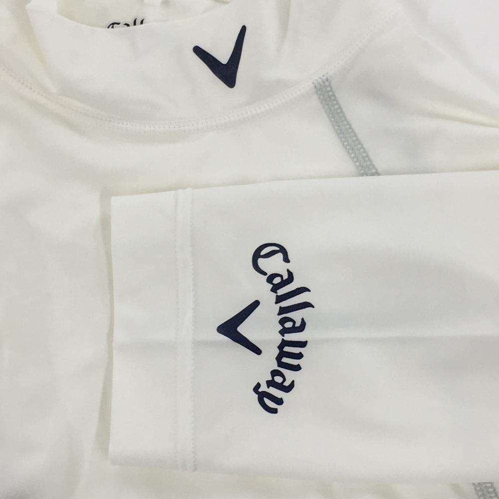 【超美品】キャロウェイ ハイネックインナーシャツ 白×ネイビー ネックロゴプリント ストレッチ メンズ 3・Large ゴルフウェア Callaway