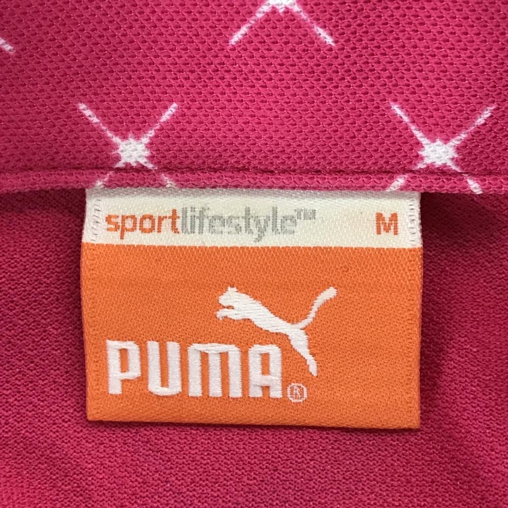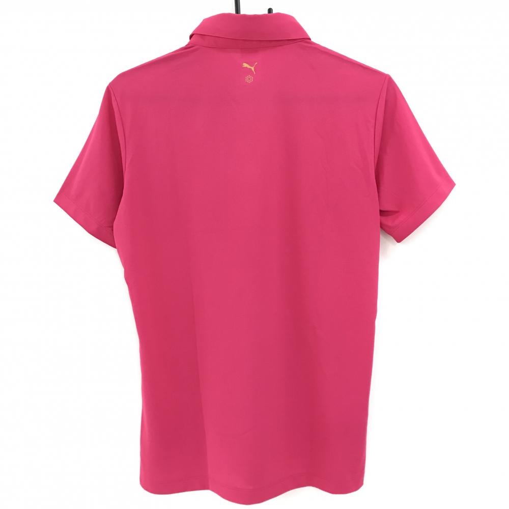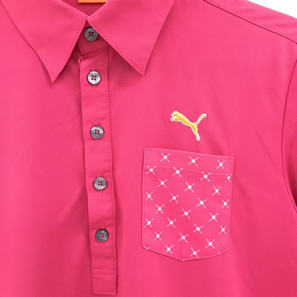 【超美品】プーマ 半袖ポロシャツ ピンク×白 胸ポケット ロゴ刺しゅう メンズ M ゴルフウェア PUMA