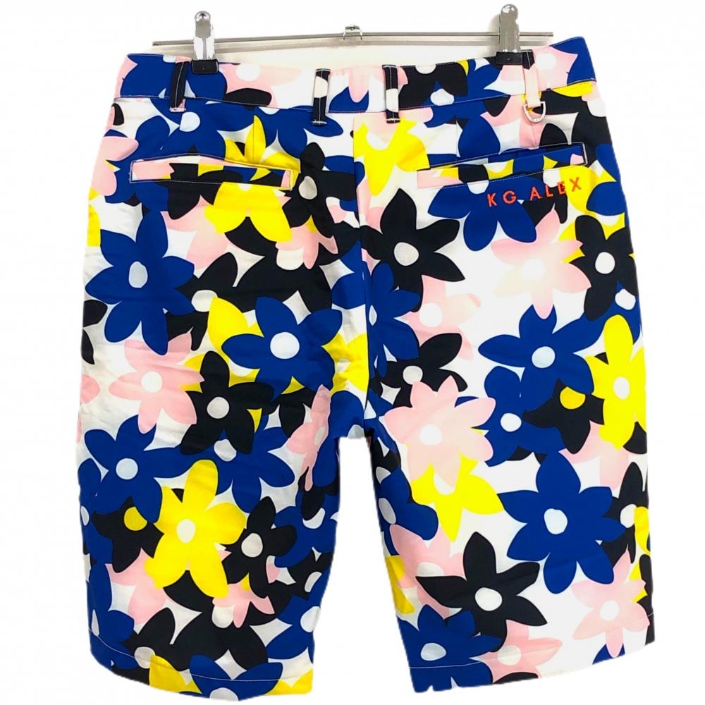 【超美品】ケージーアレックス ハーフパンツ ブルー×ピンク×イエロー 花柄 メンズ L ゴルフウェア kiss on the green
