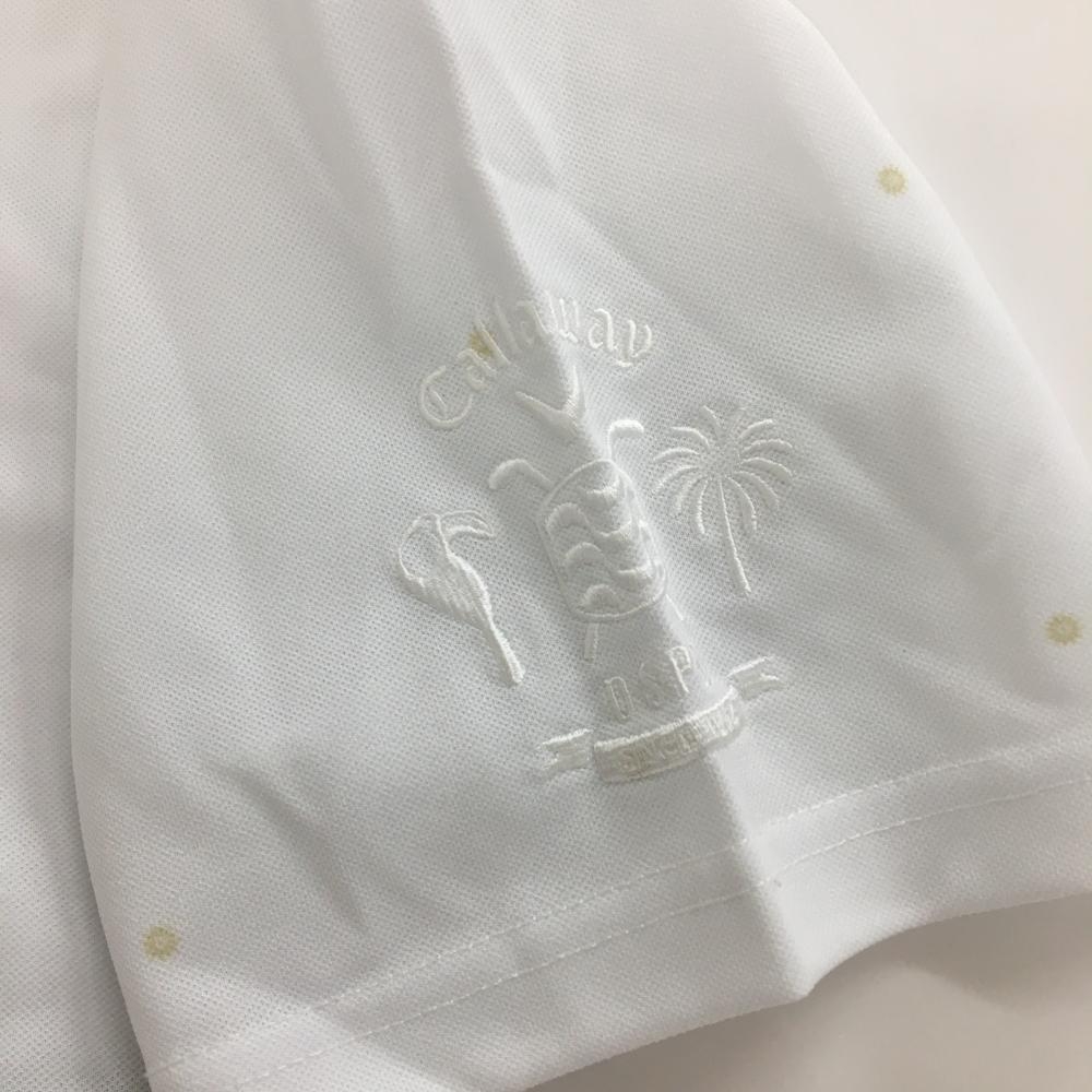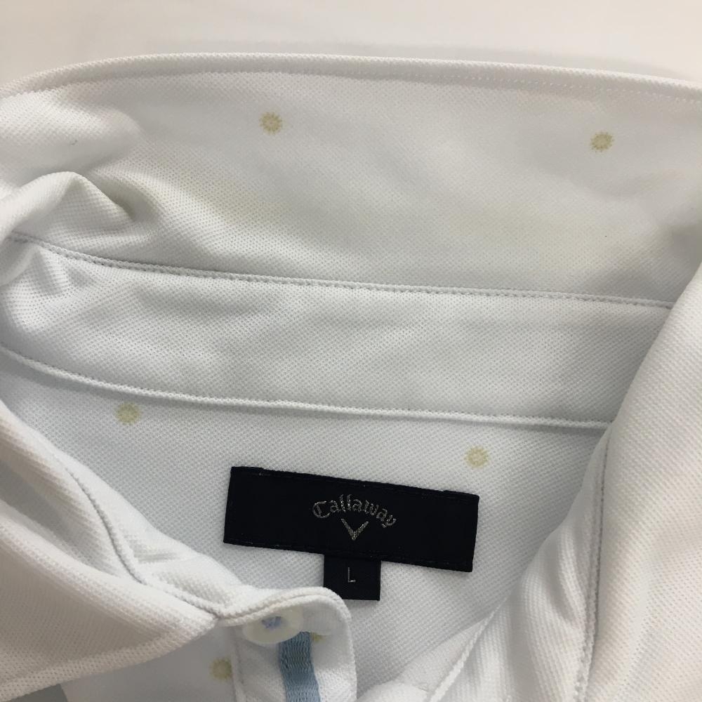 キャロウェイ 半袖ポロシャツ 白×ベージュ ドット風 胸ポケット ロゴ刺しゅう メンズ L ゴルフウェア Callaway