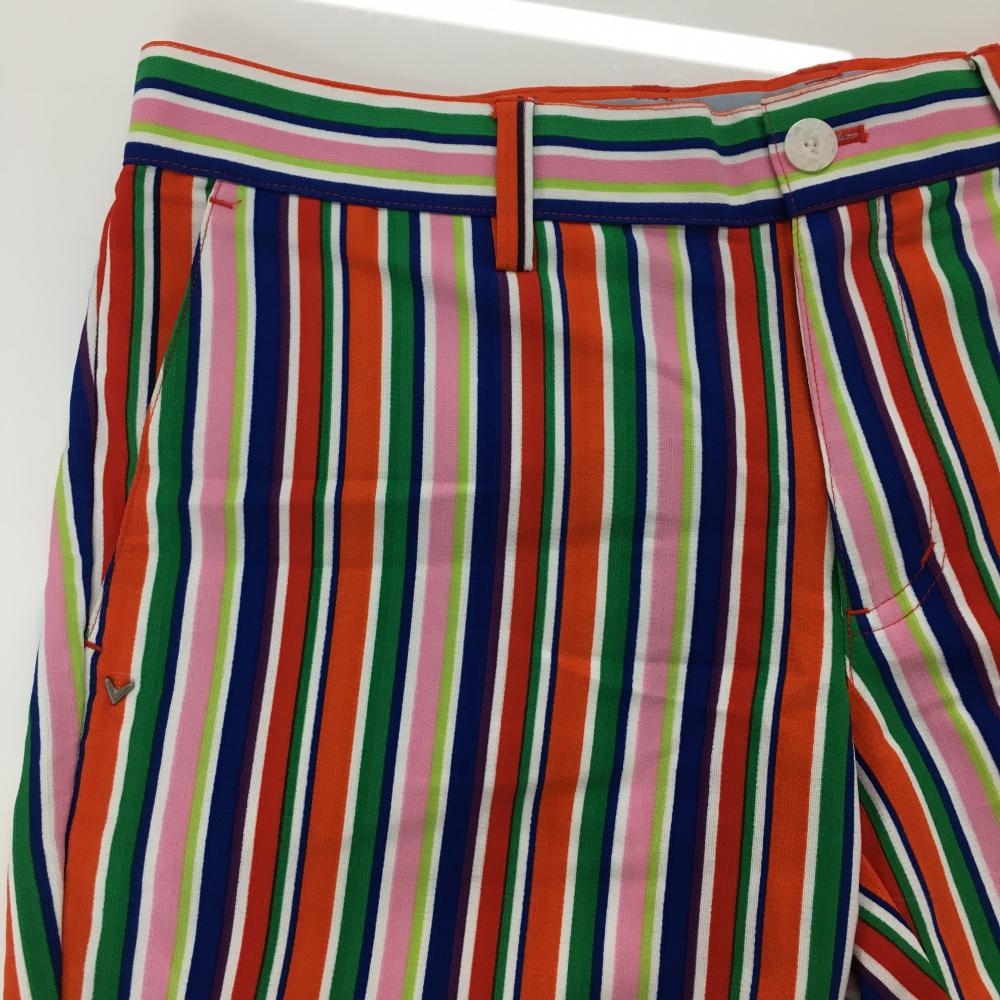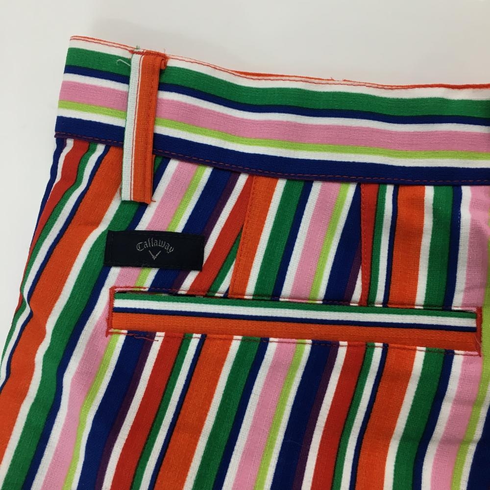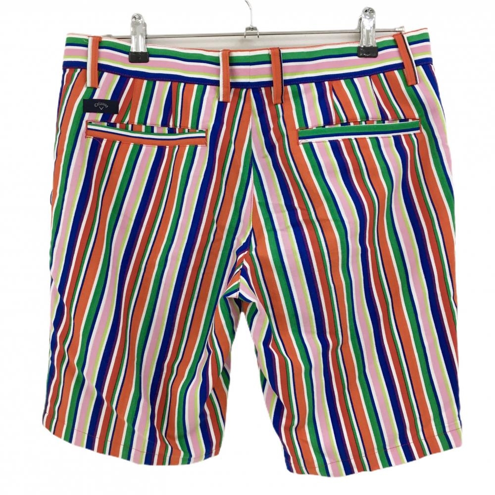 【超美品】キャロウェイ ハーフパンツ マルチカラー ストライプ柄 立体ロゴ メンズ L ゴルフウェア Callaway