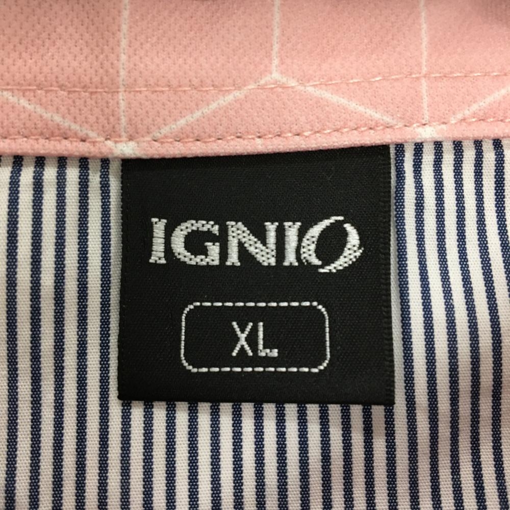 【超美品】イグニオ 半袖ポロシャツ ピンク×白 総柄 ボタンダウン iCOOL メンズ XL ゴルフウェア IGNIO