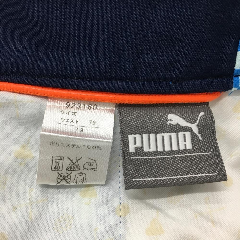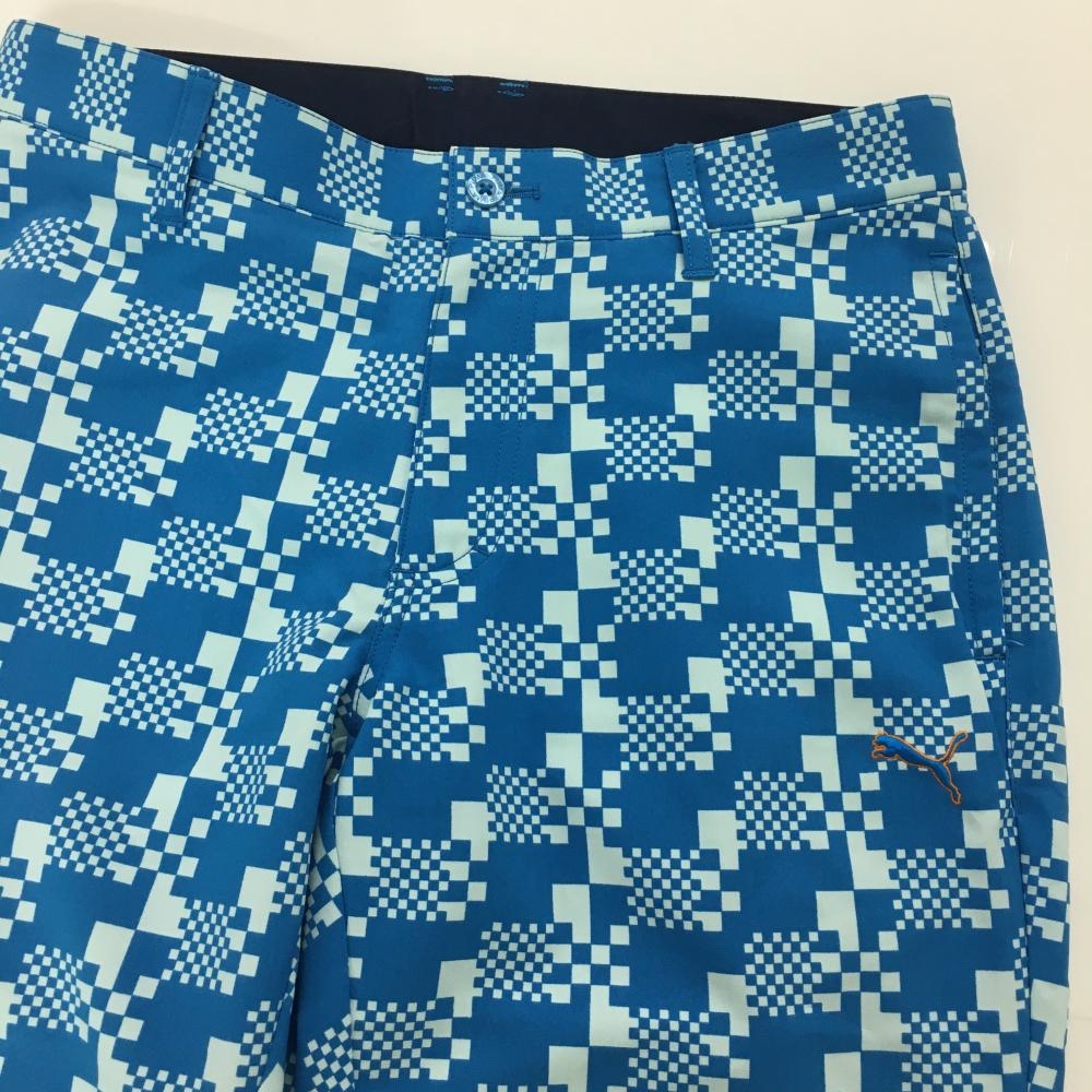【美品】プーマ パンツ ブルー×白 総柄 ロゴ刺しゅう メンズ 79 ゴルフウェア PUMA