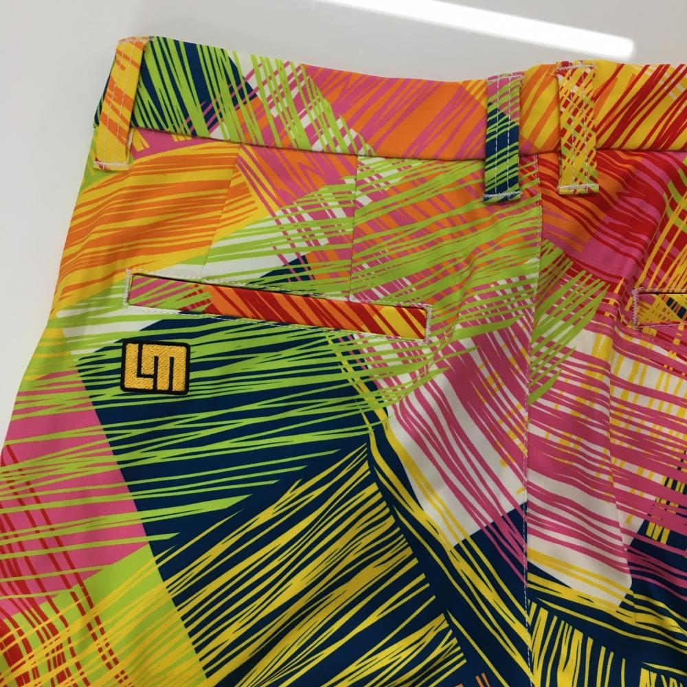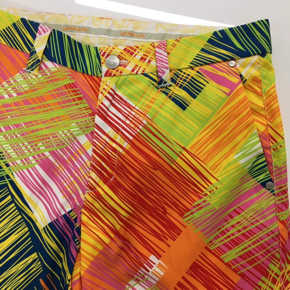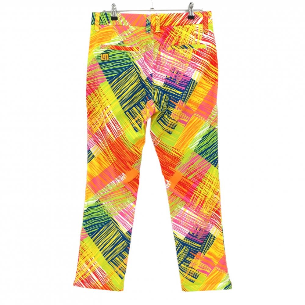 【美品】ラウドマウス パンツ マルチカラー スクラッチイエロー柄 バックロゴ メンズ L ゴルフウェア LOUDMOUTH