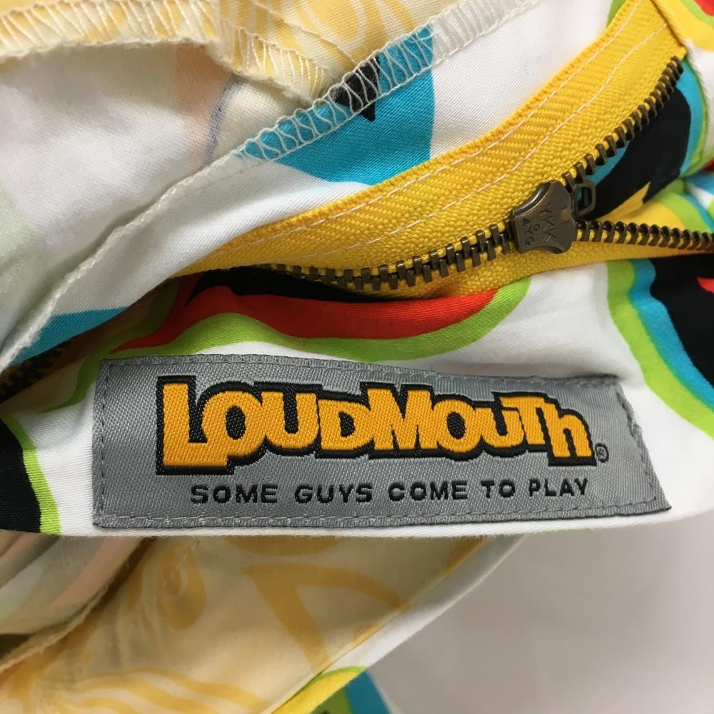 【美品】ラウドマウス パンツ 白×マルチカラー 総柄 シャガデリックホワイト ストレッチ メンズ 32×UF ゴルフウェア LOUDMOUTH