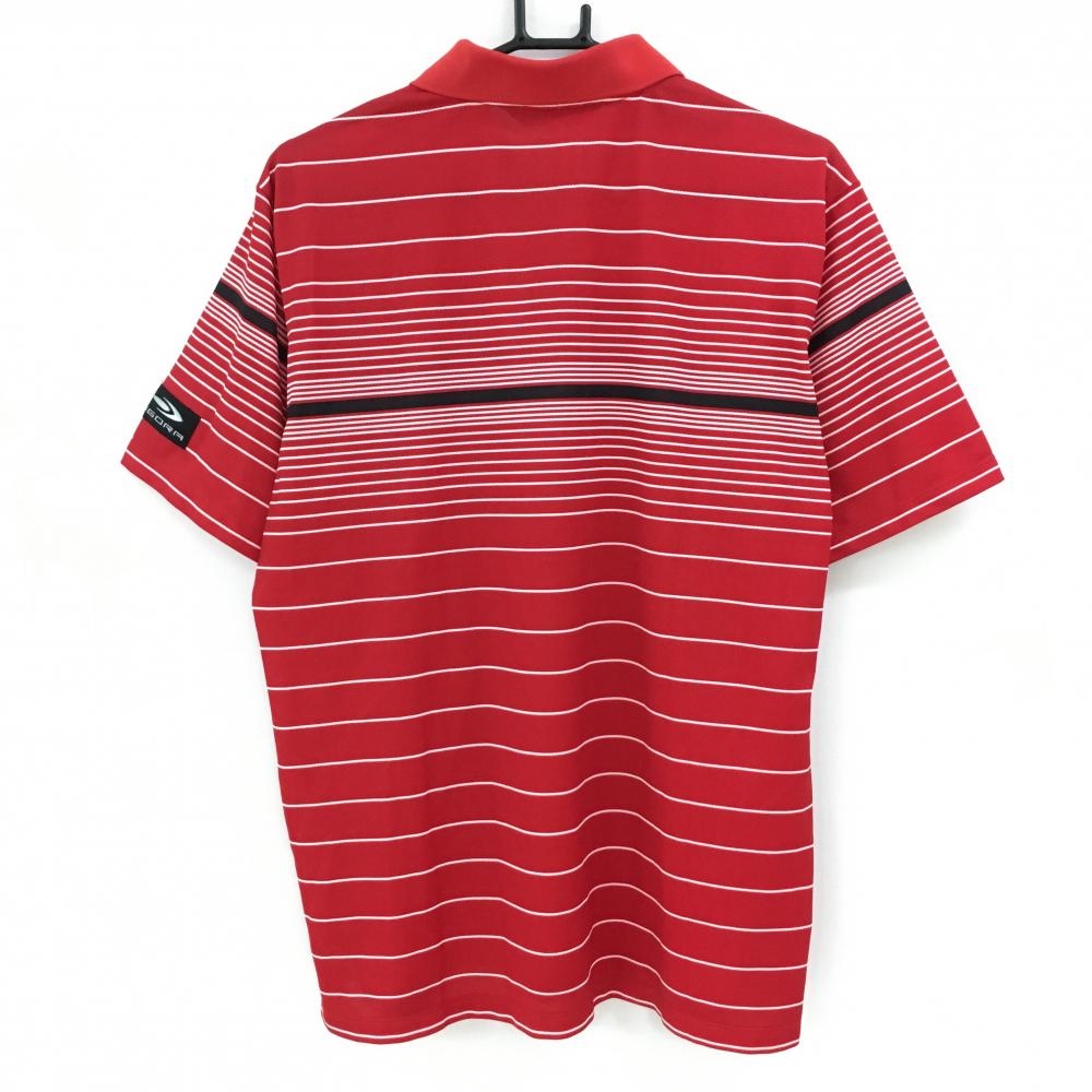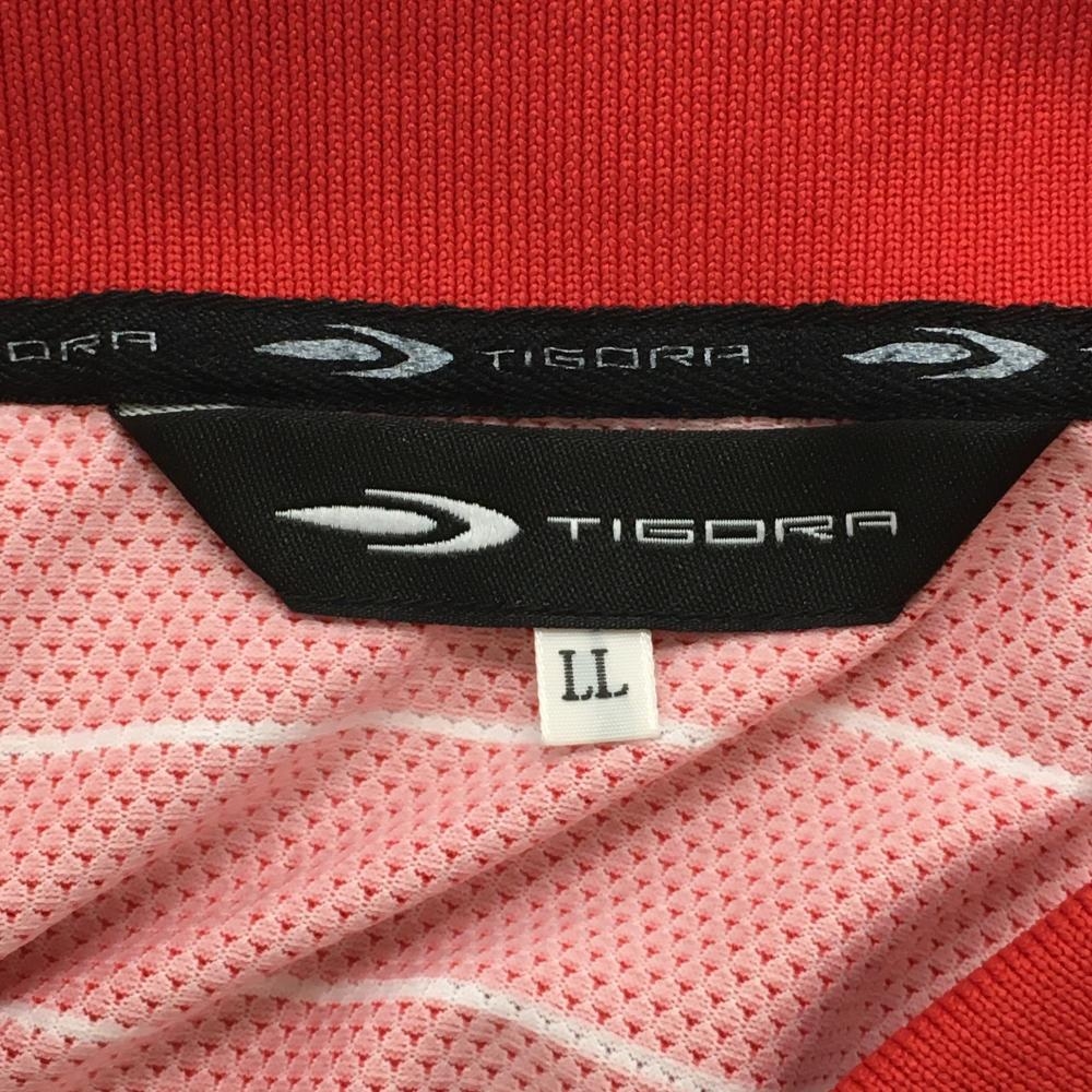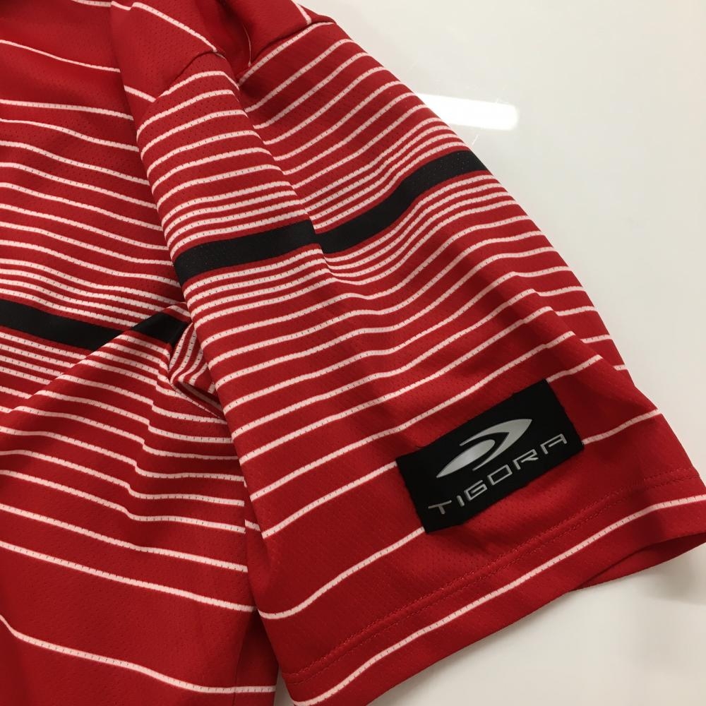 ティゴラ 半袖ポロシャツ レッド×白 ボーダー メッシュ地 ハーフジップ メンズ LL ゴルフウェア TIGORA