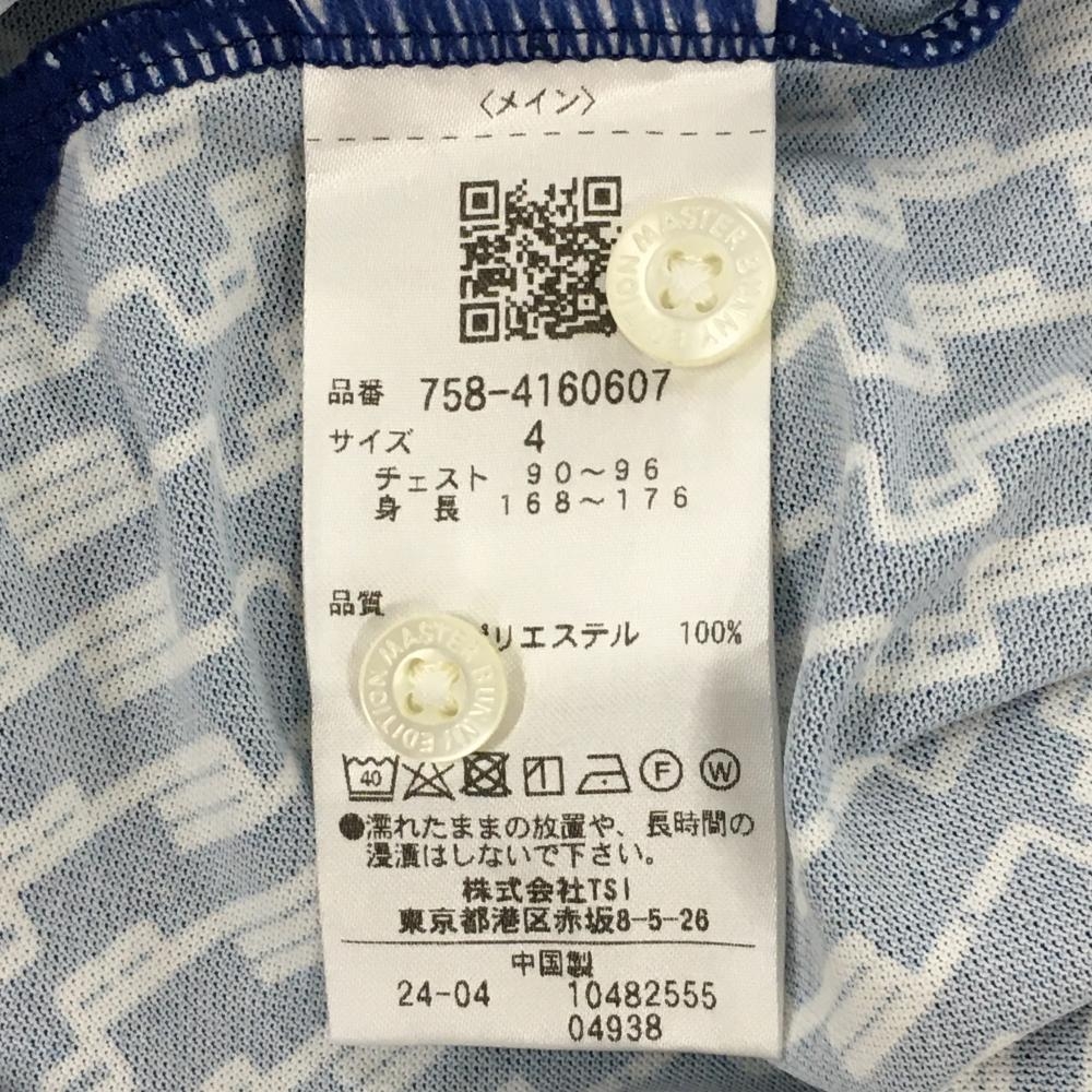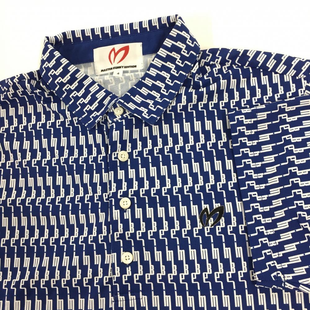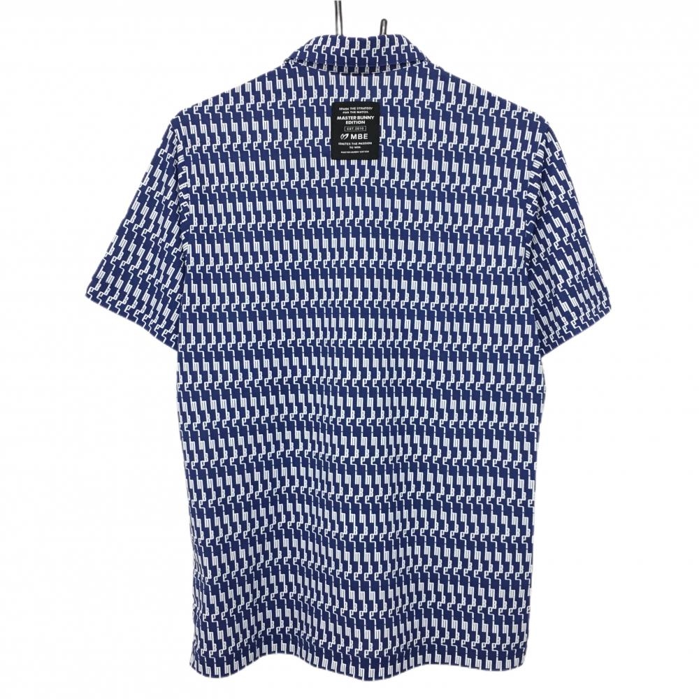 【超美品】マスターバニー 半袖ポロシャツ ブルー×白 ロゴ総柄 メンズ 4(M) ゴルフウェア 2024年モデル MASTER BUNNY EDITION