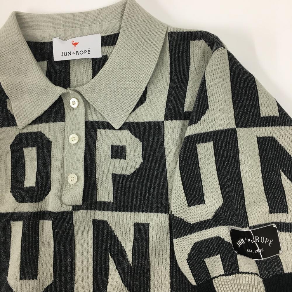 【超美品】ジュンアンドロペ 半袖ポロセーター ベージュ×ダークグレー レディース M ゴルフウェア 2025年モデル JUN&ROPE