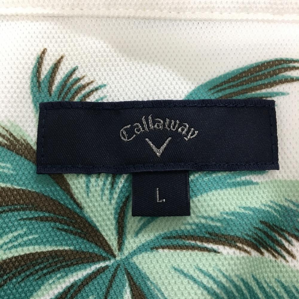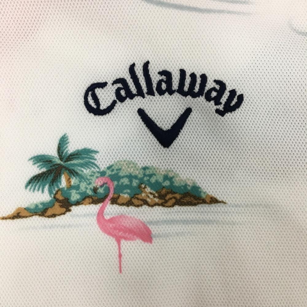 【超美品】キャロウェイ 半袖ポロシャツ 白×ピンク フラミンゴ柄 ロゴ刺しゅう メンズ L ゴルフウェア Callaway
