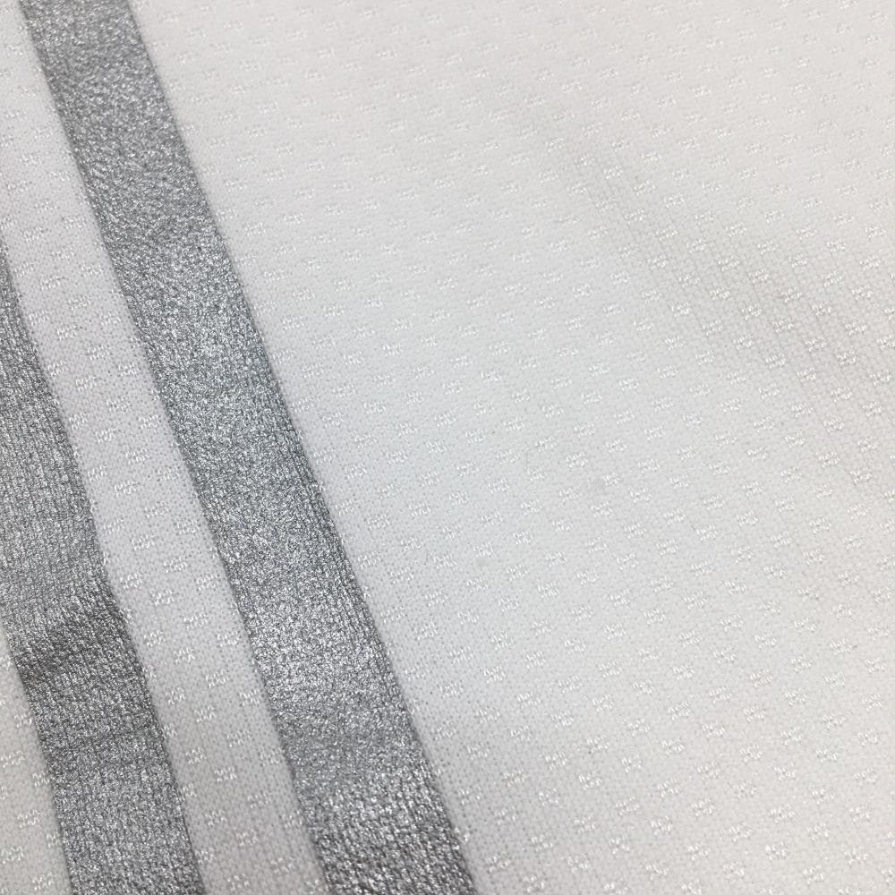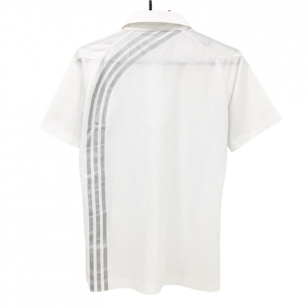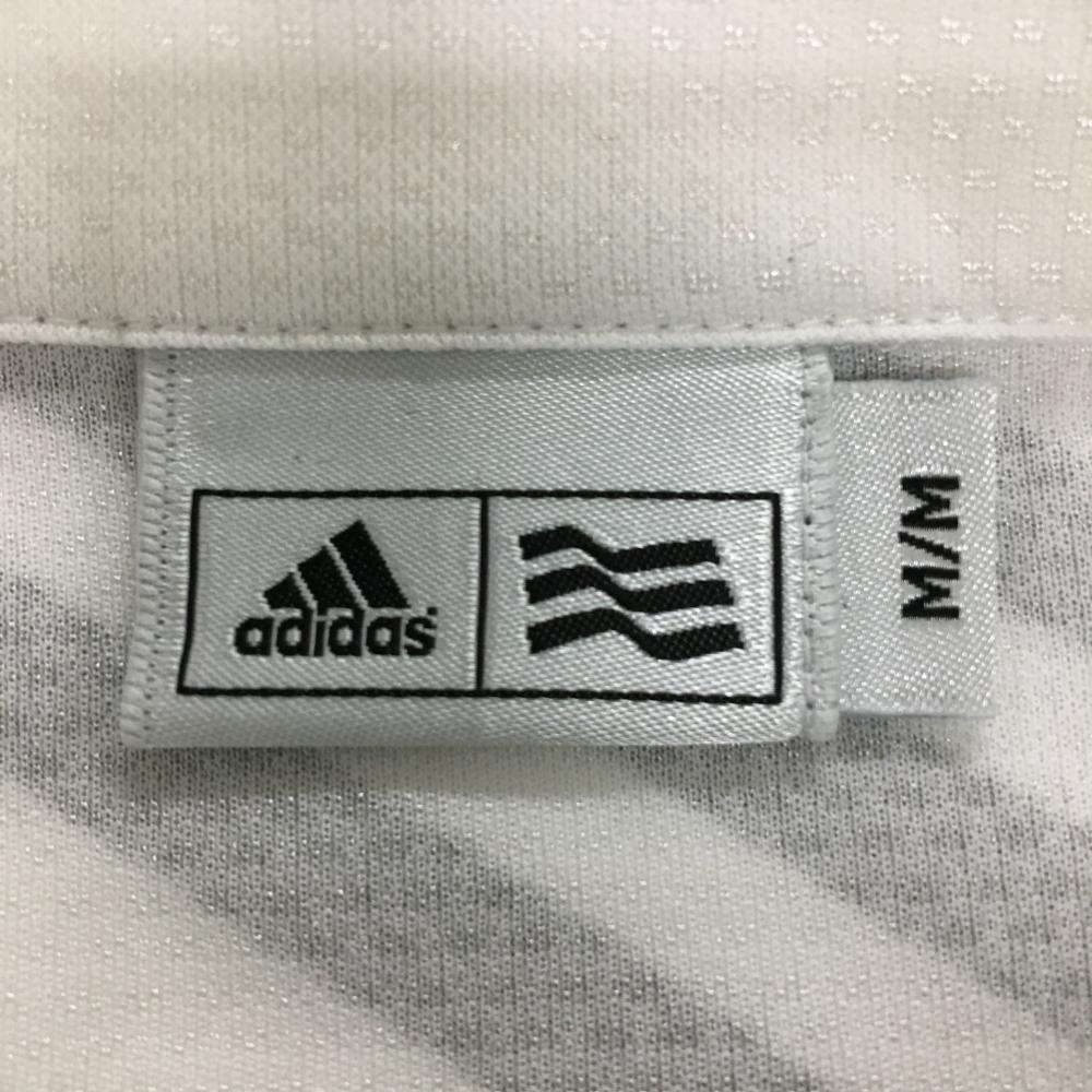 アディダス 半袖ポロシャツ 白×シルバー 地模様 背面3ライン ハーフジップ メンズ M/M ゴルフウェア adidas