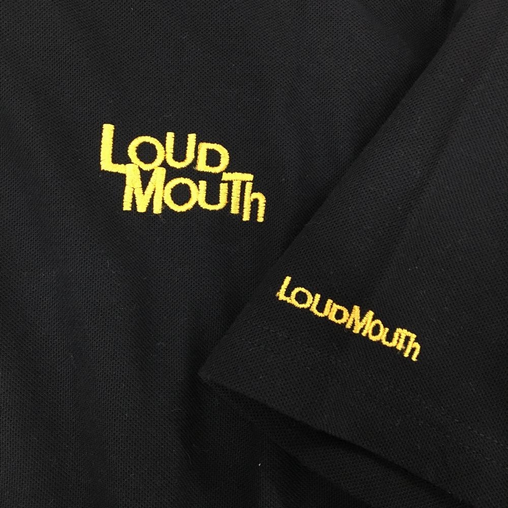 ラウドマウス 半袖ポロシャツ 黒 ロゴ刺しゅう ボタンダウン メンズ L ゴルフウェア LOUDMOUTH