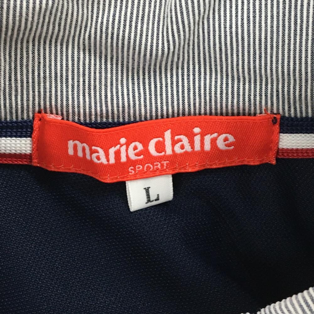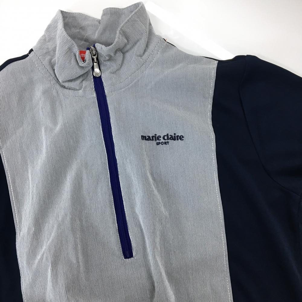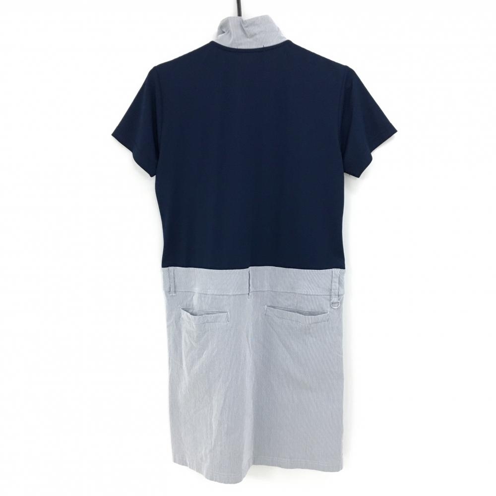 【超美品】マリクレールスポール 半袖ハイネックワンピース ネイビー×白 レディース L ゴルフウェア marie claire