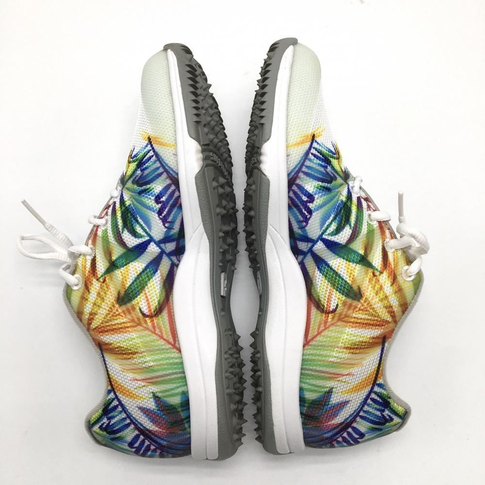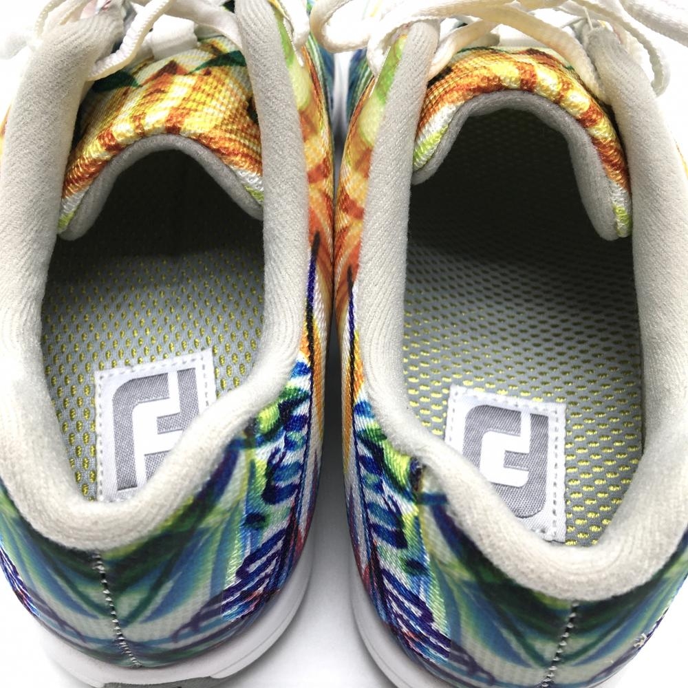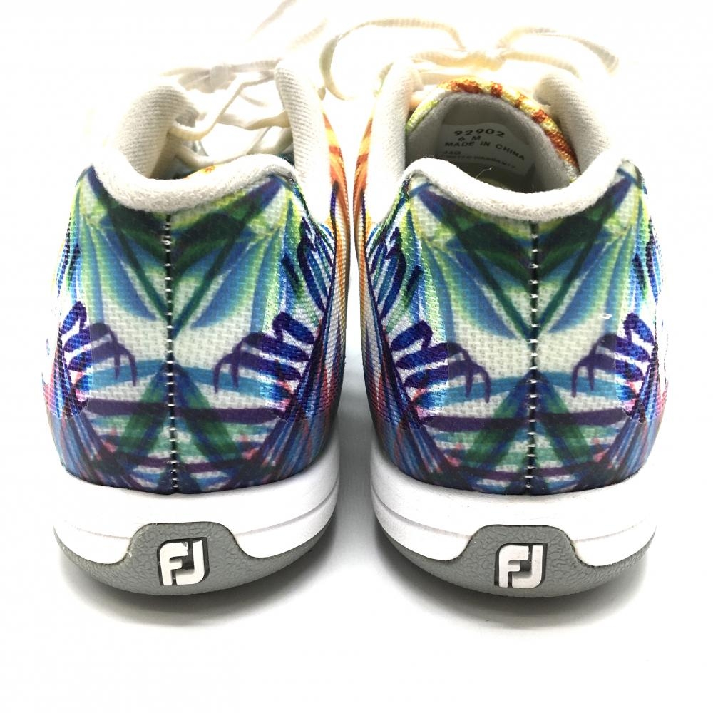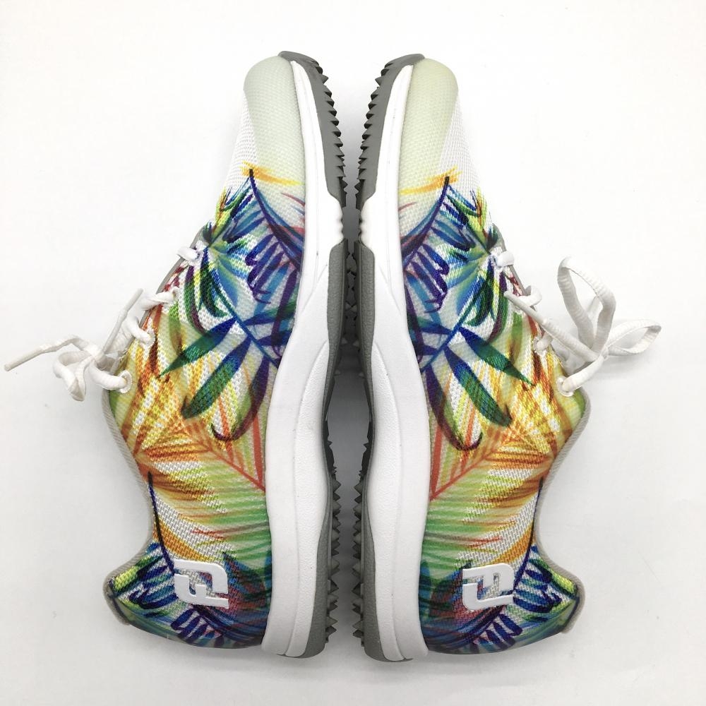 【超美品】フットジョイleisure ゴルフシューズ 白×マルチカラー リーフ柄 92902 スパイクレス レディース 23.0相当 ゴルフウェア FootJoy
