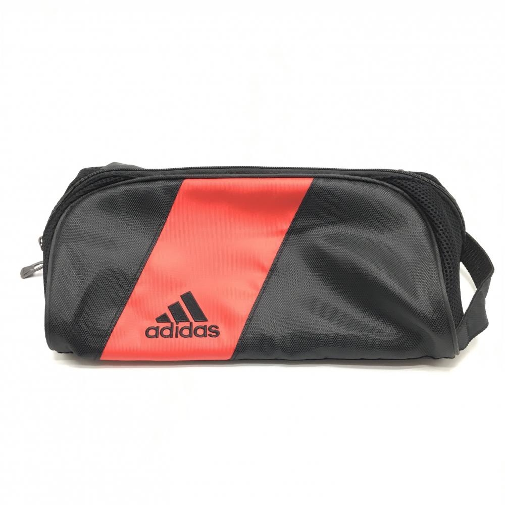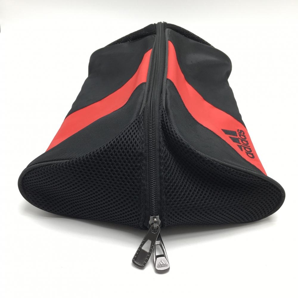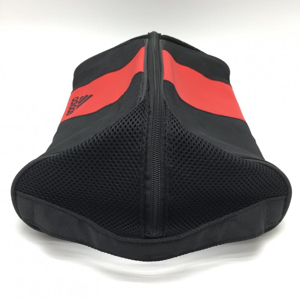 【美品】アディダス シューズケース 黒×レッド ロゴ刺しゅう サイドメッシュゴルフ adidas