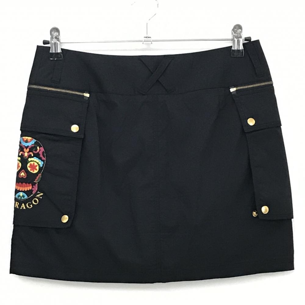 【超美品】ダンスウィズドラゴン スカート 黒 スカル サイドポケット着脱可 レディース 3(L) ゴルフウェア Dance With Dragon