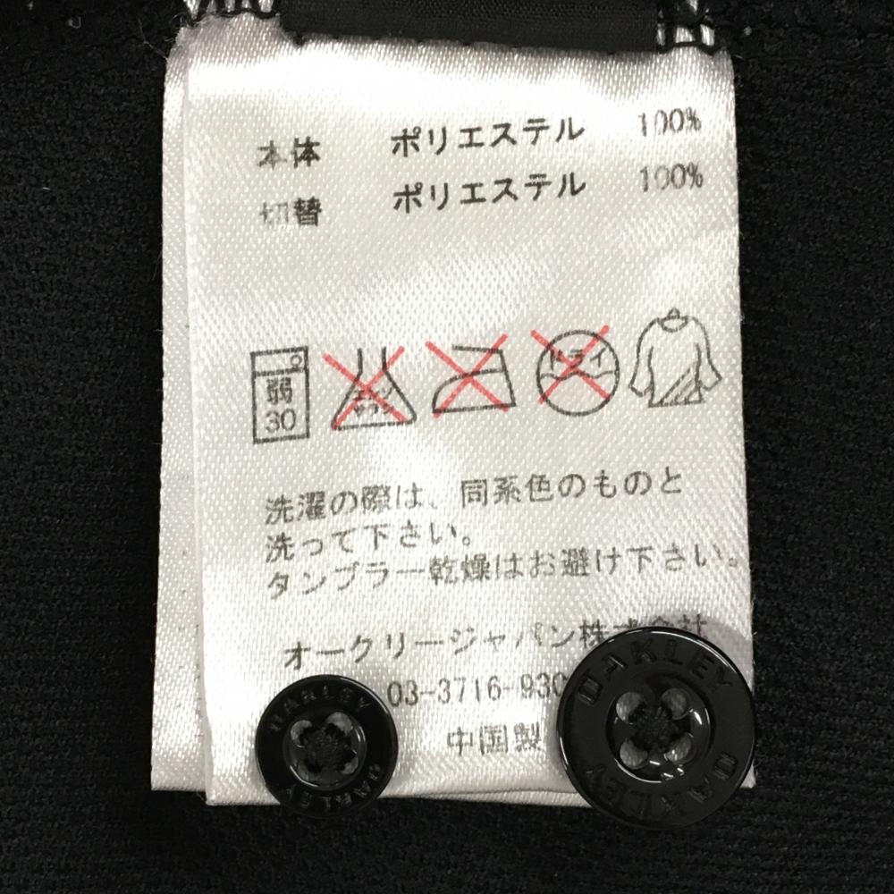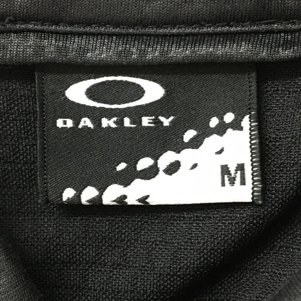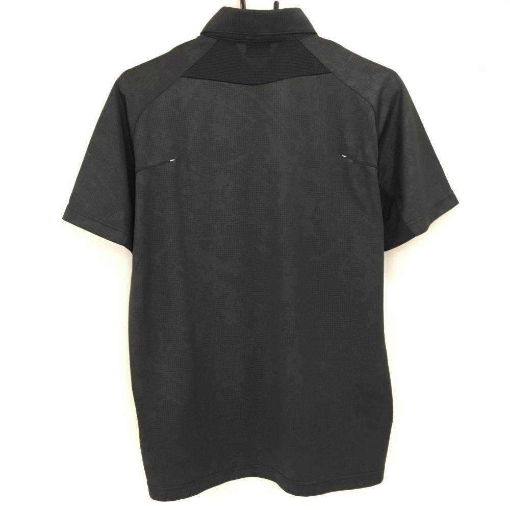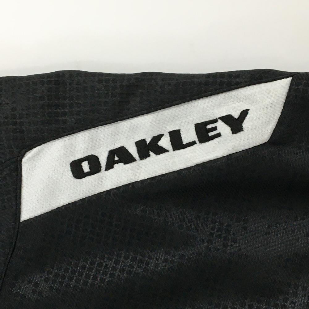 【超美品】オークリー 半袖ポロシャツ ダークグレー×黒 総柄地模様 袖下メッシュ調 ロゴ刺しゅう メンズ M ゴルフウェア Oakley