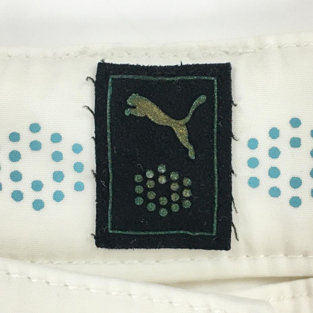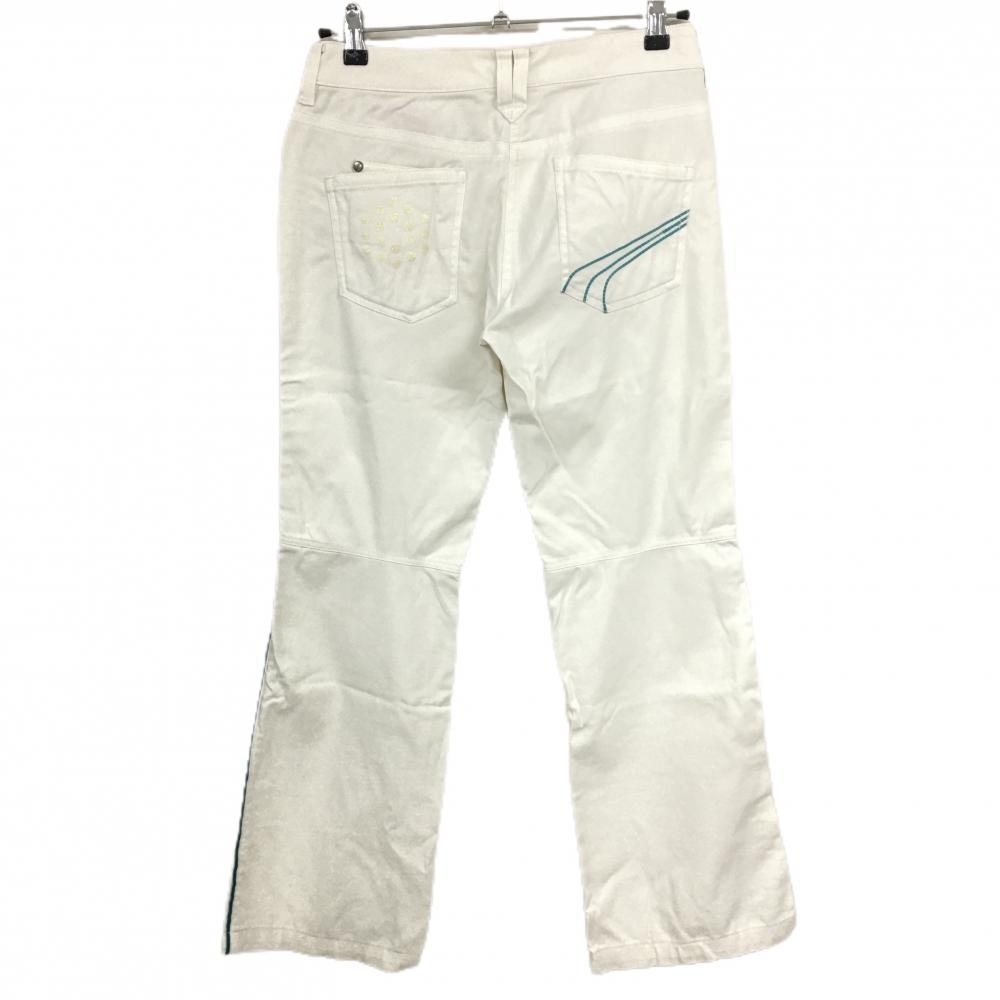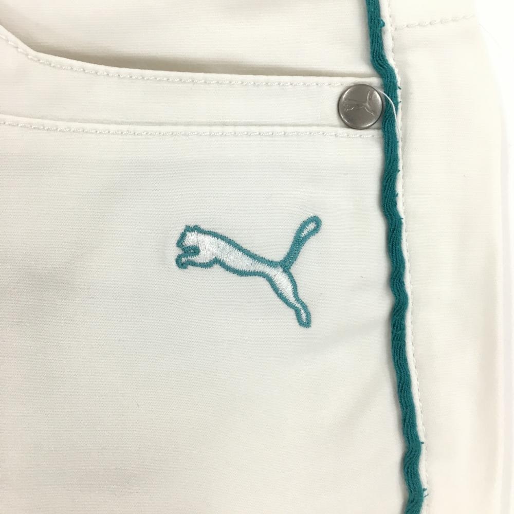 プーマ パンツ 白×グリーン サイドライン ストレッチ ロゴ刺しゅう レディース L ゴルフウェア PUMA