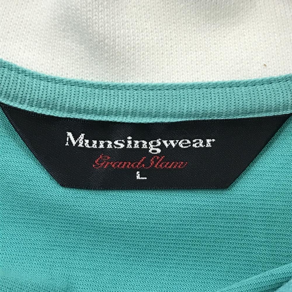 マンシングウェア 半袖ハイネックシャツ ライトグリーン×マルチカラー ランダムストライプ レディース L ゴルフウェア Munsingwear