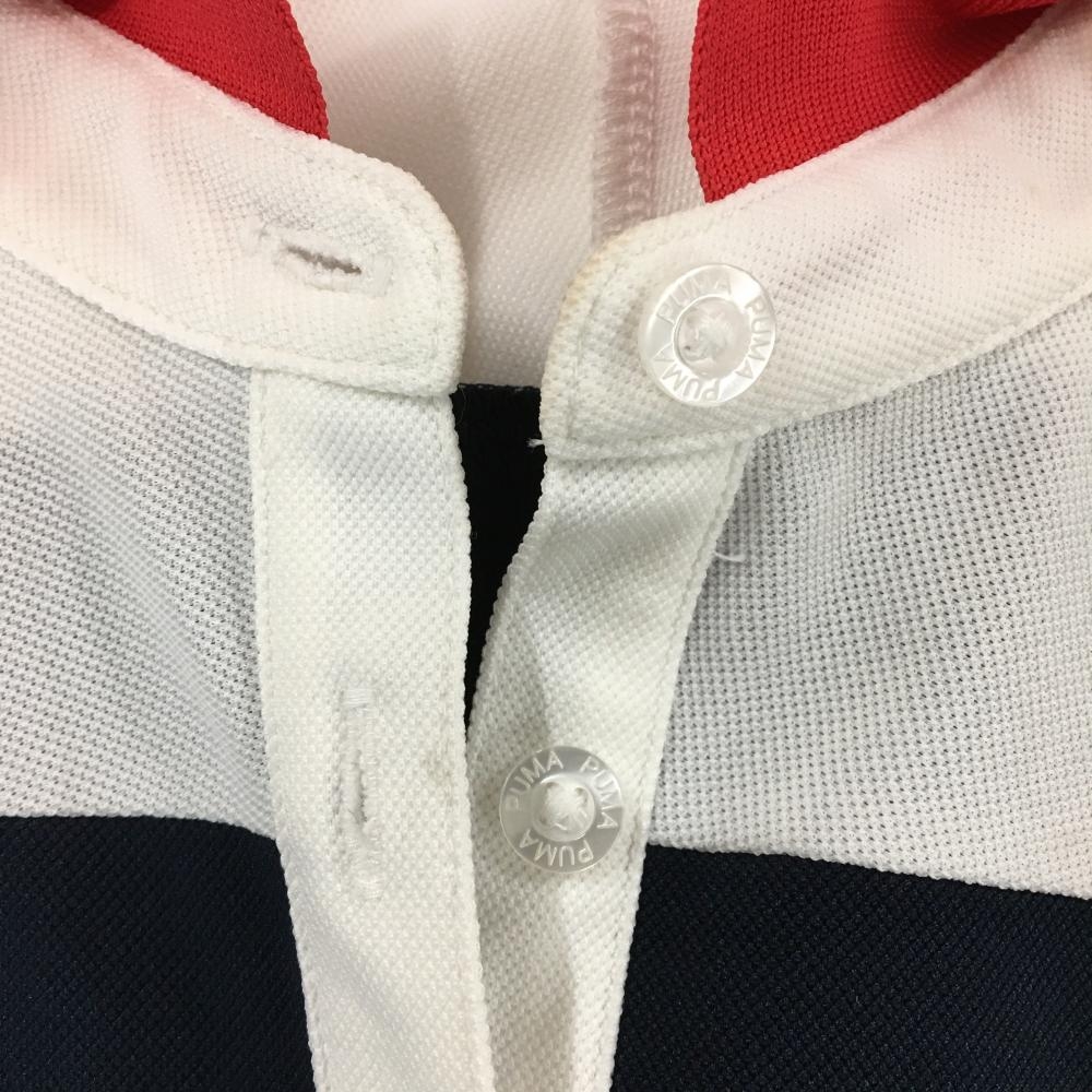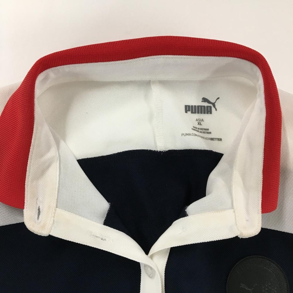 プーマ 半袖ポロシャツ ネイビー×白 バイカラー ロゴ レディース XL ゴルフウェア PUMA