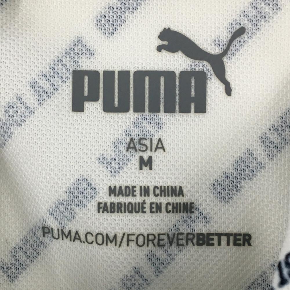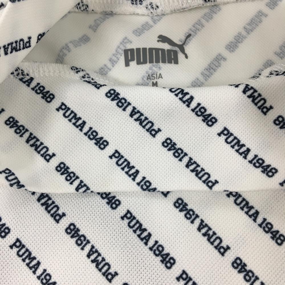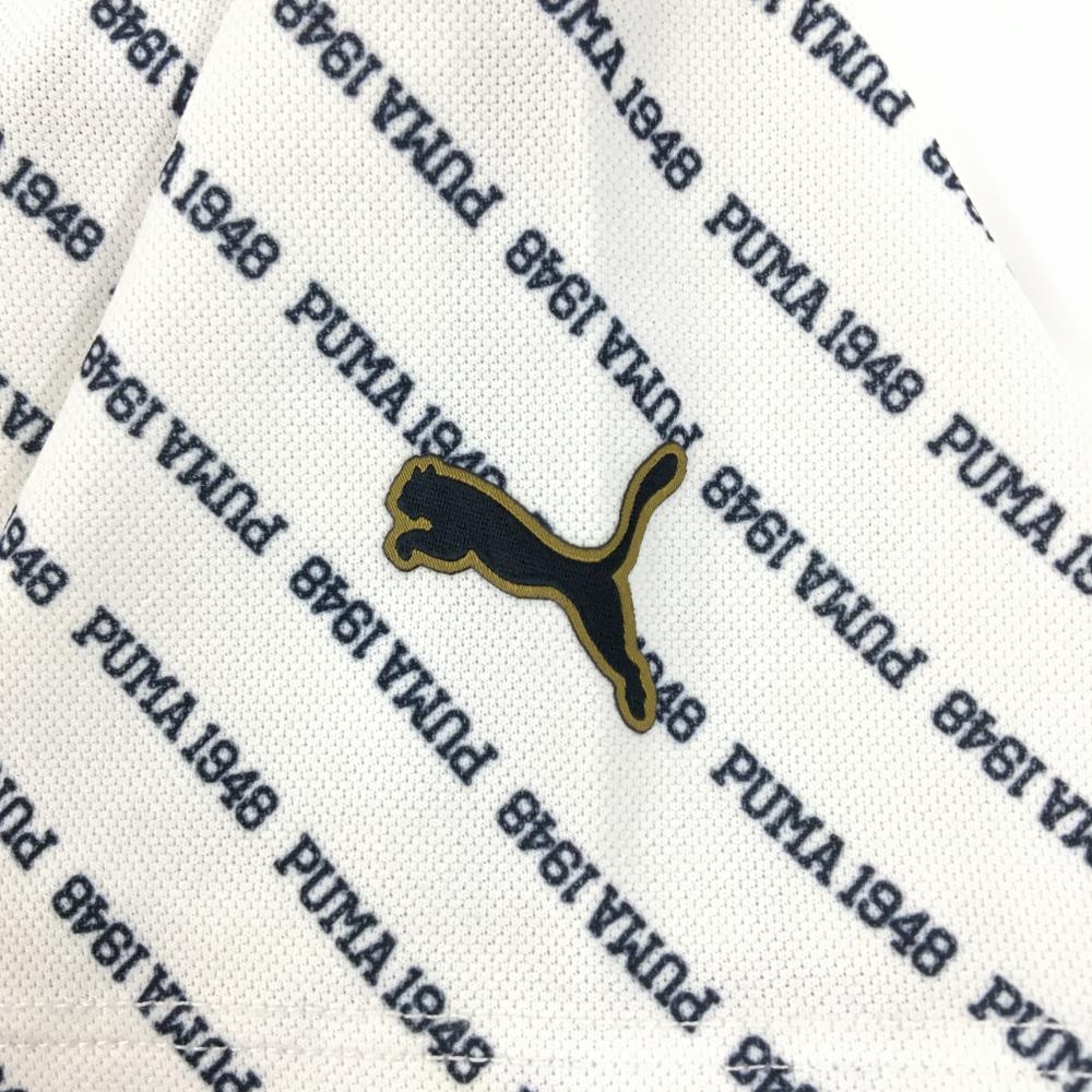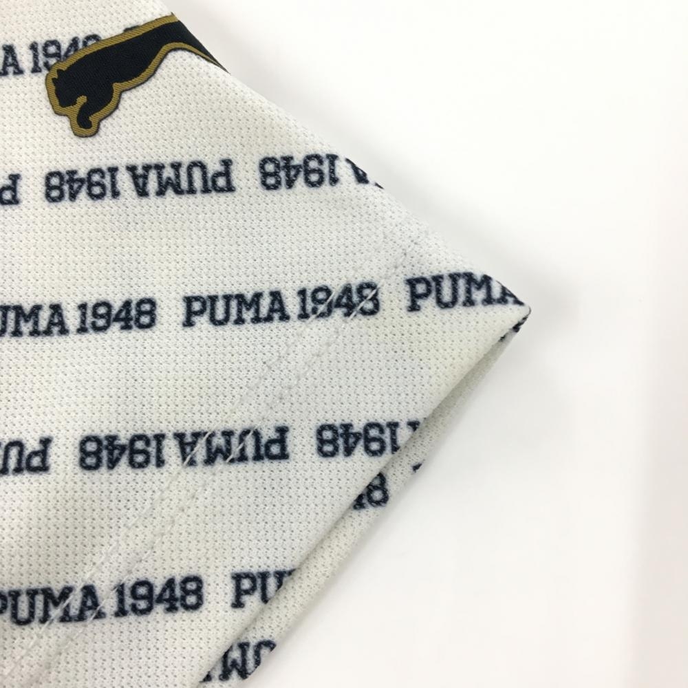 プーマ 半袖ハイネックシャツ 白×ネイビー ロゴ総柄 胸ポケット レディース M ゴルフウェア PUMA
