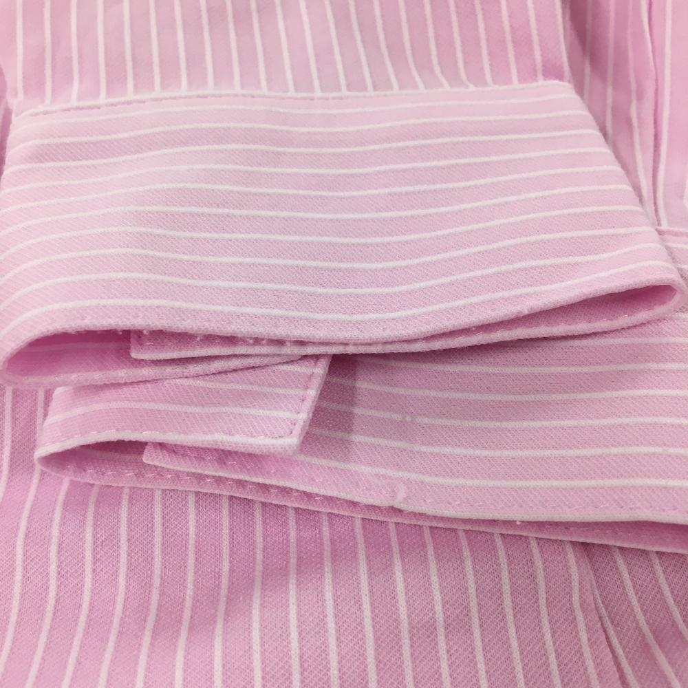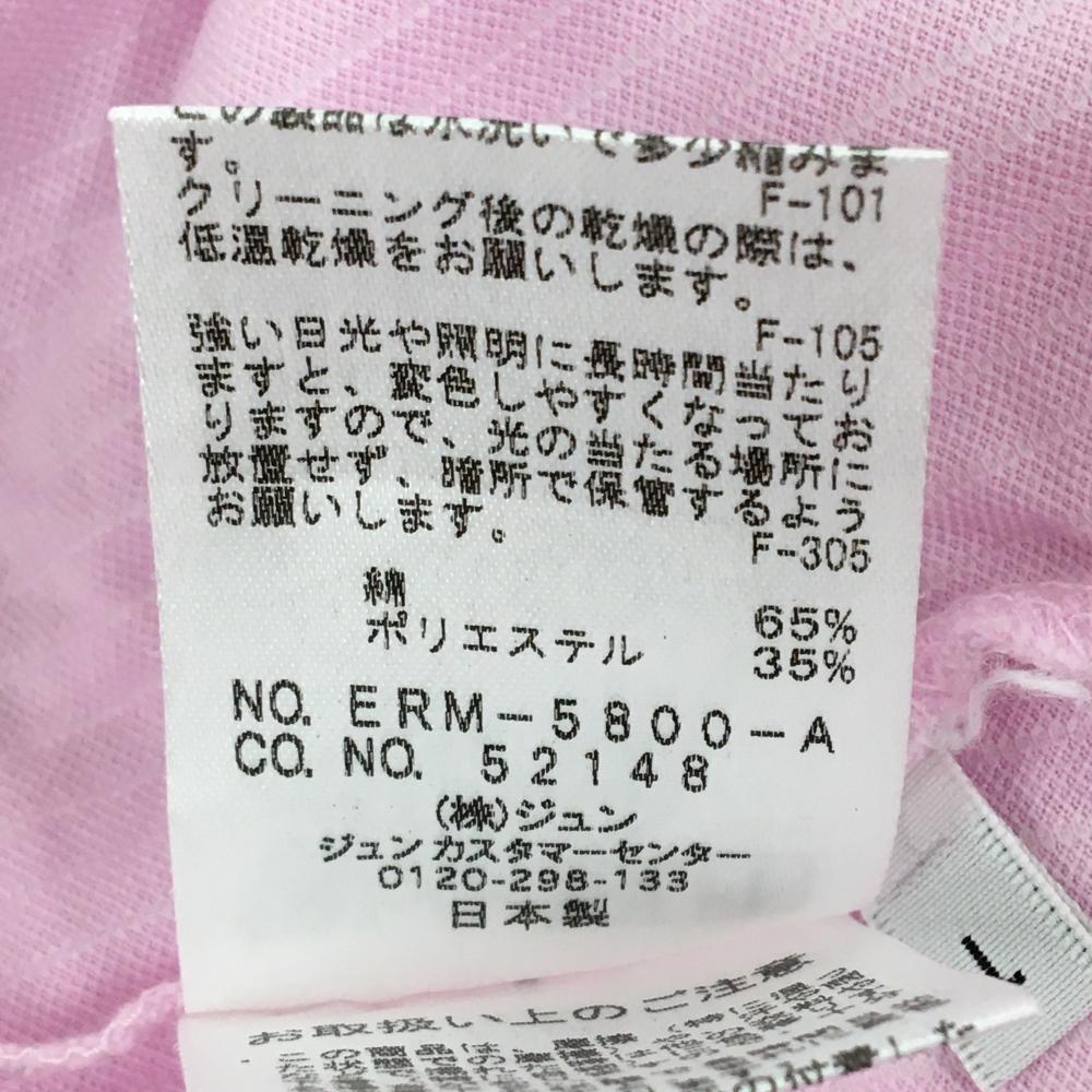 【美品】ジュンアンドロペ 長袖ポロシャツ ピンク×白 ストライプ ワッペン レディース L ゴルフウェア JUN&ROPE