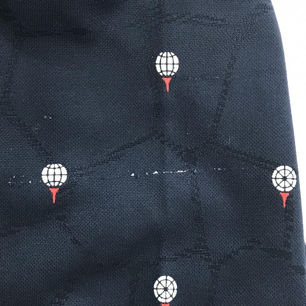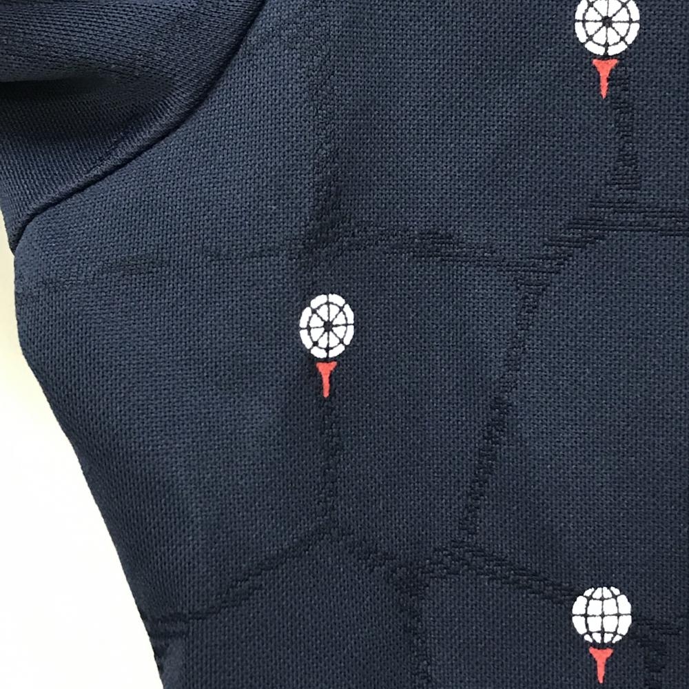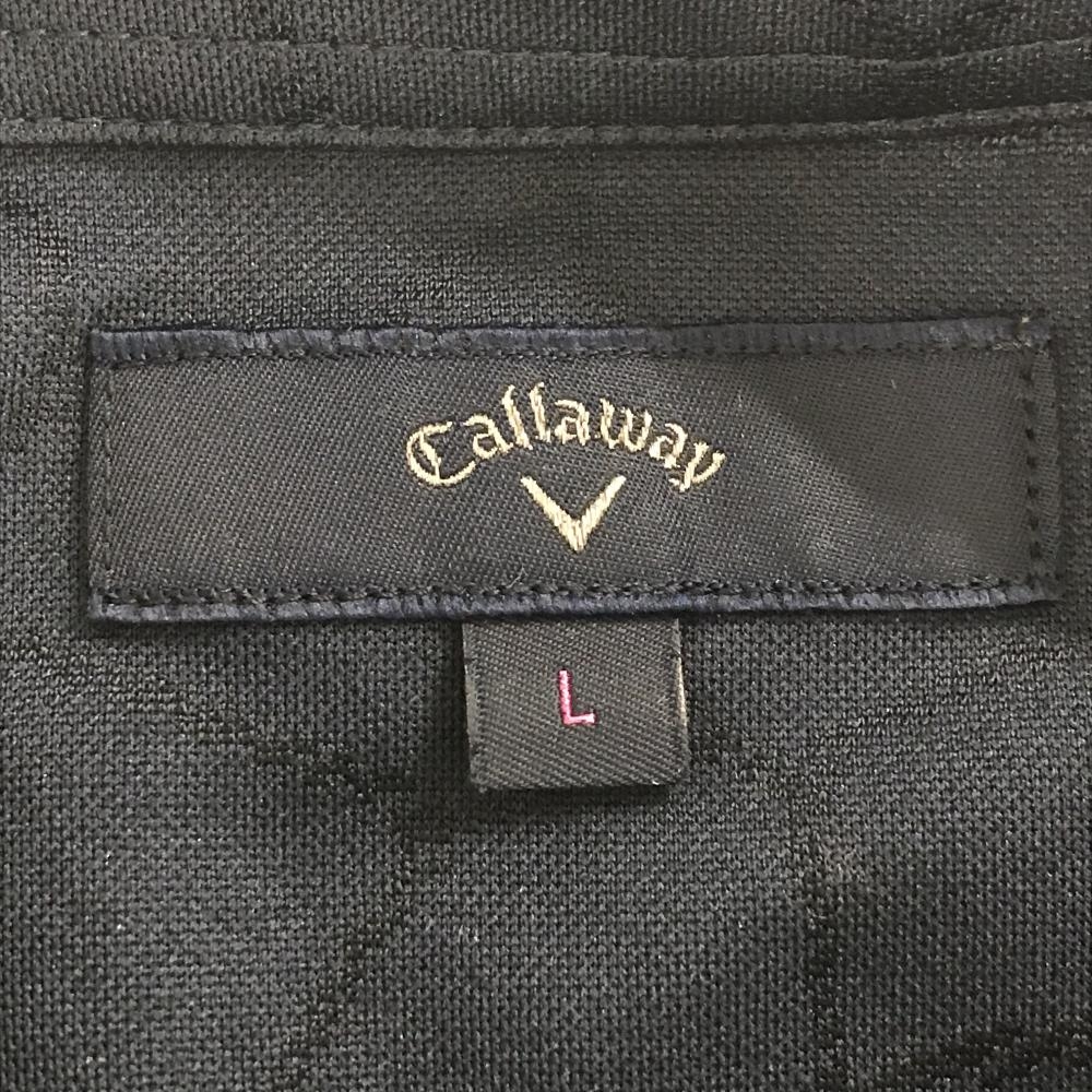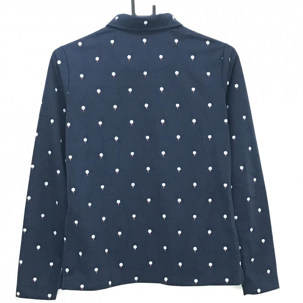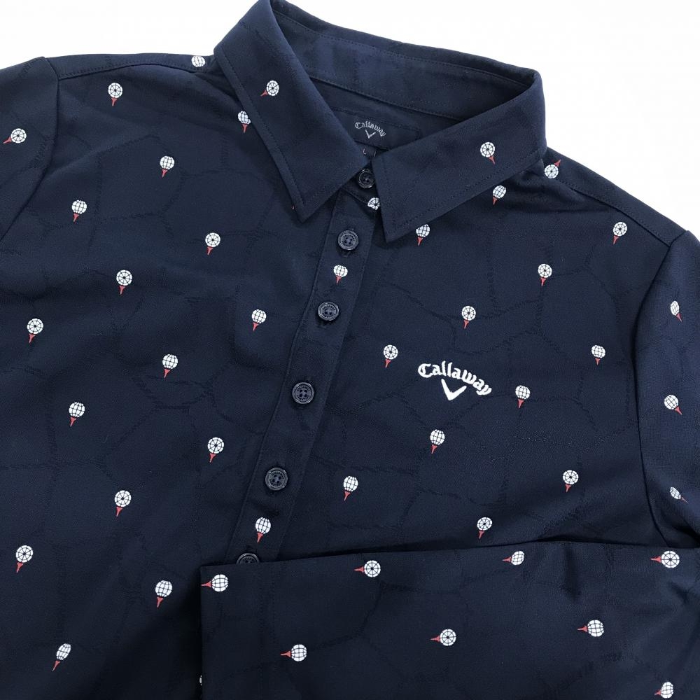 【美品】キャロウェイ 長袖ポロシャツ ネイビー×白 地模様 ボール柄 左袖汚れ少 レディース L ゴルフウェア Callaway