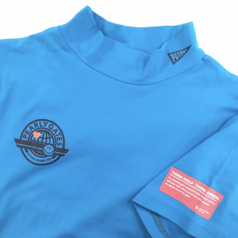 【美品】パーリーゲイツ 半袖ハイネックワンピース ブルー ニコちゃん スマイル レディース 2(L) ゴルフウェア PEARLY GATES