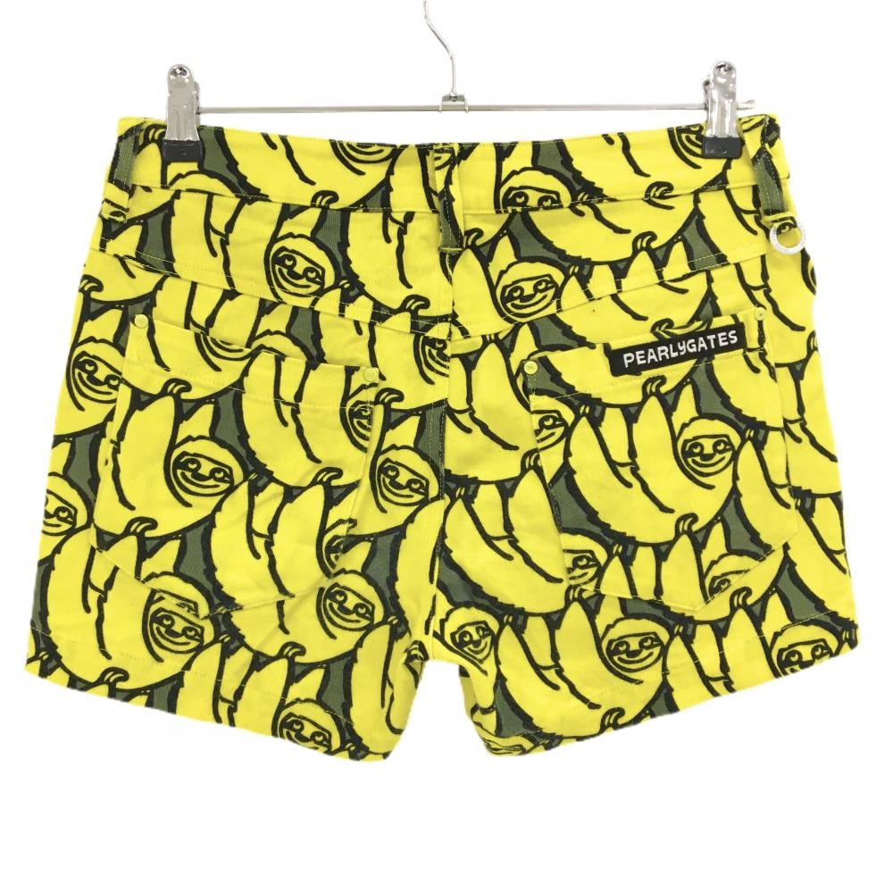 【美品】パーリーゲイツ ショートパンツ イエロー×黒 なまけもの総柄 レディース 1(M) ゴルフウェア PEARLY GATES