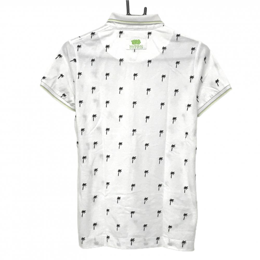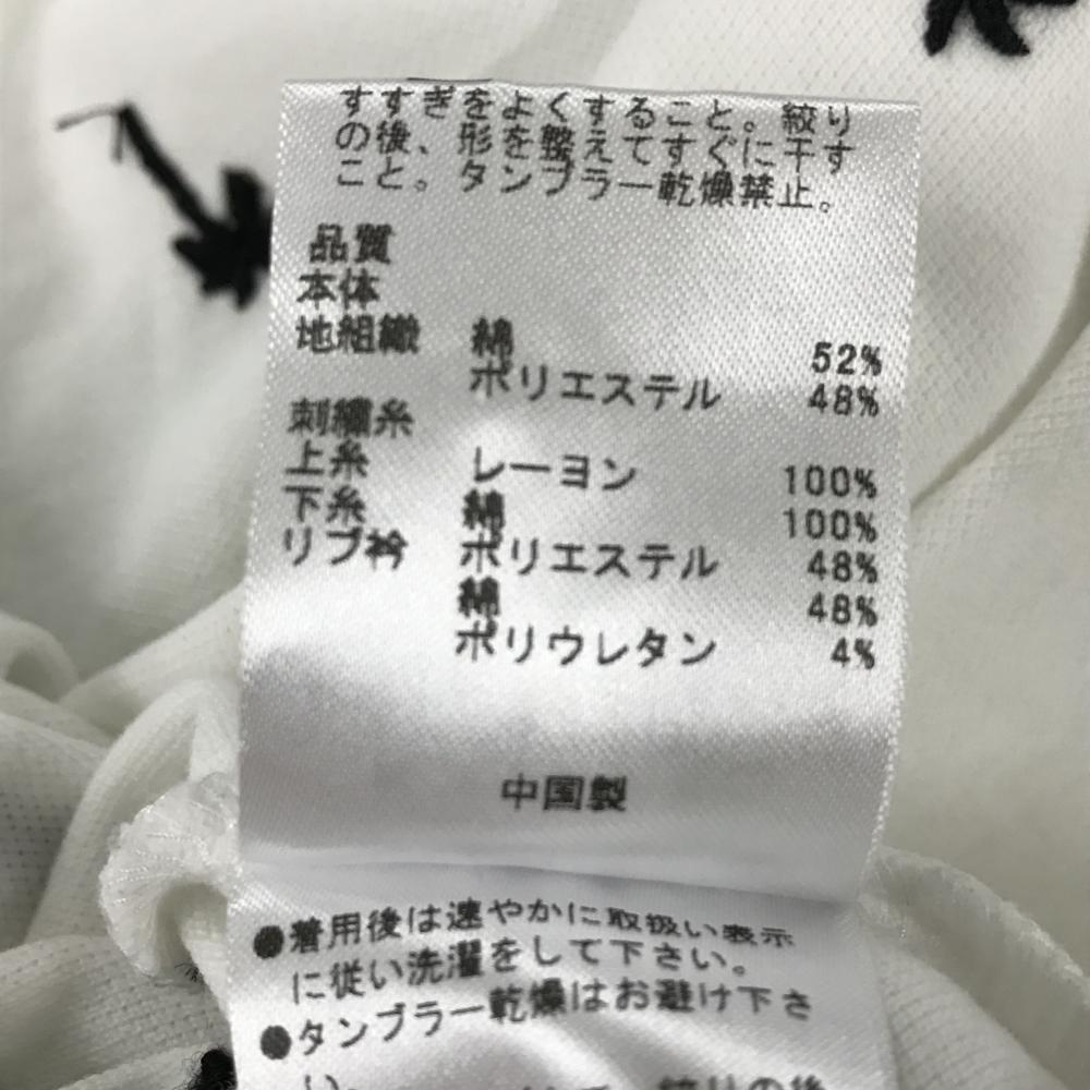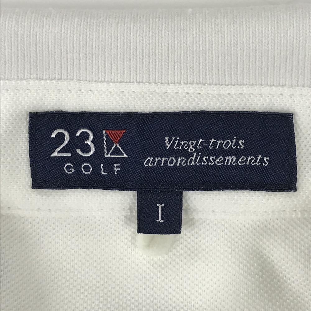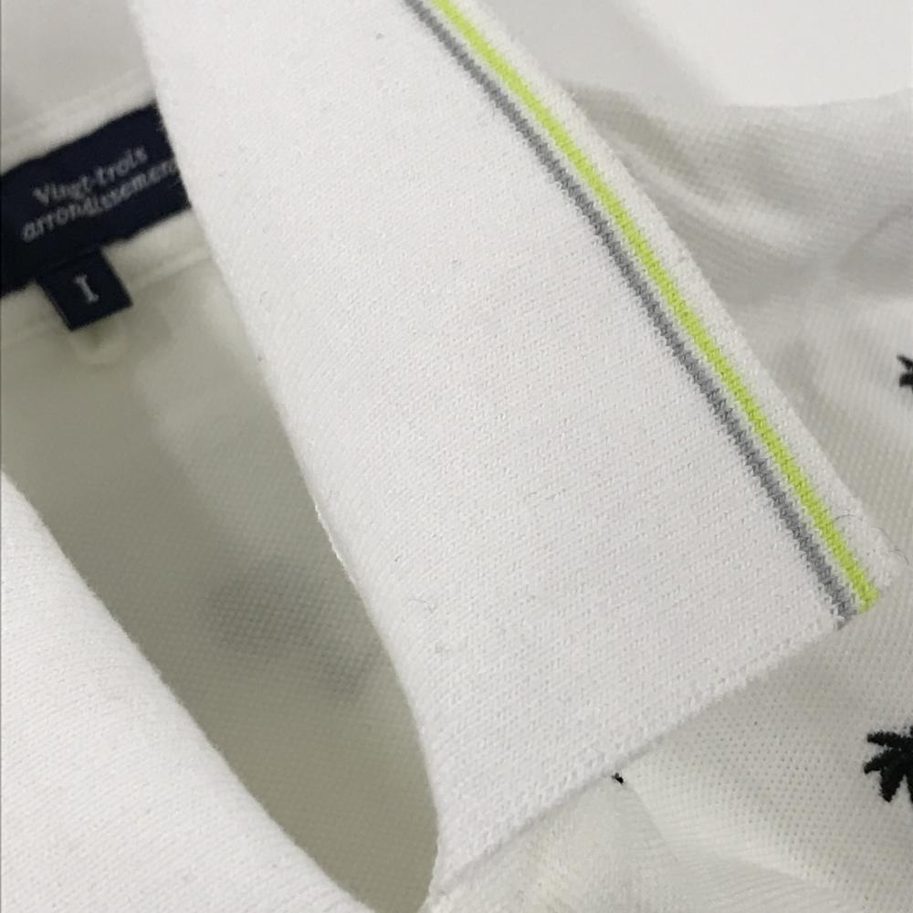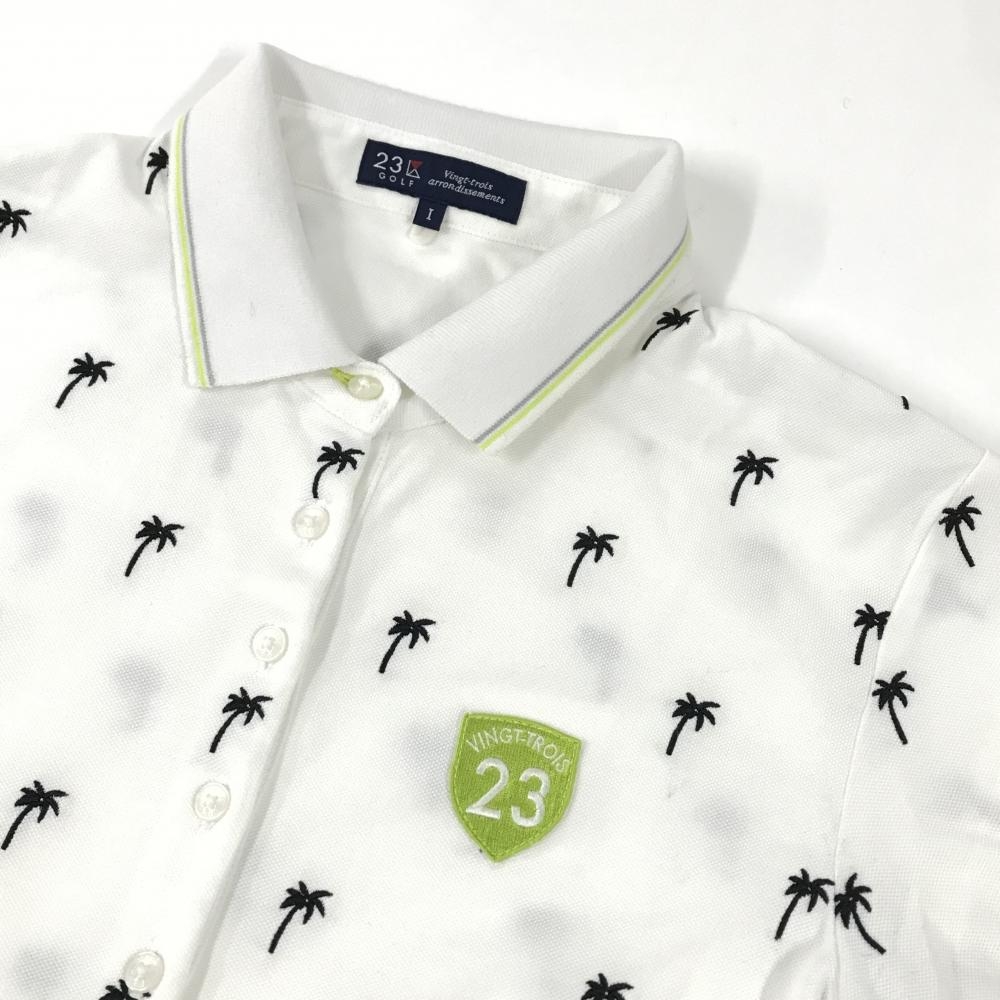 【美品】23区ゴルフ 半袖ポロシャツ 白×ネイビー ヤシの木刺しゅう総柄 袖・襟ライン レディース I(M) ゴルフウェア 23区