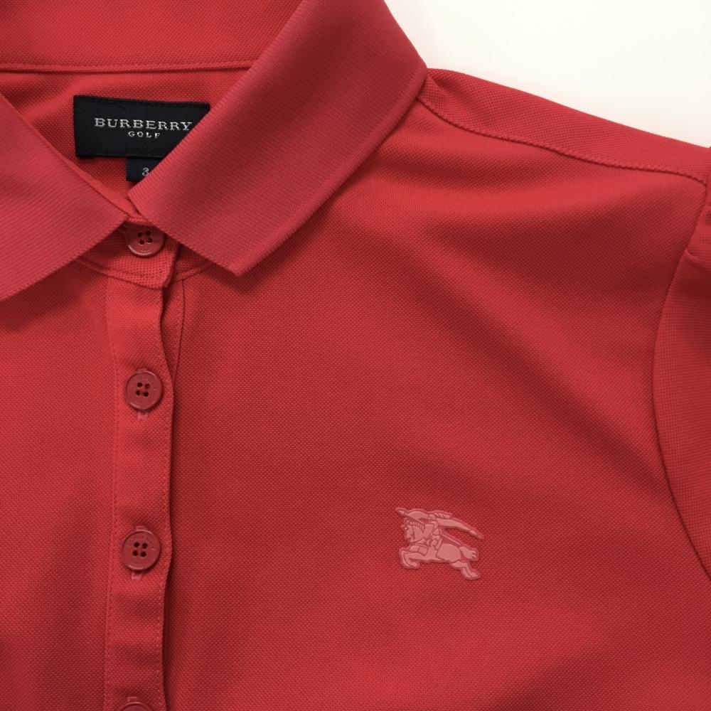 バーバリーゴルフ 半袖ポロシャツ レッド パフスリーブ レディース 3(L) ゴルフウェア BURBERRY GOLF