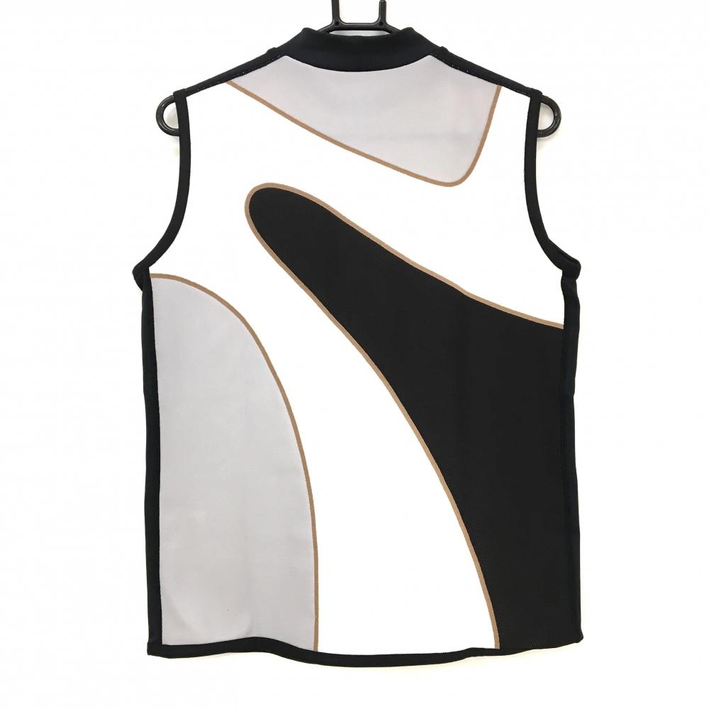 【超美品】ヘンリークラブ ノースリーブハイネックシャツ 黒×白 切替 メッシュ調 レディース 42 ゴルフウェア HENRY CLUB