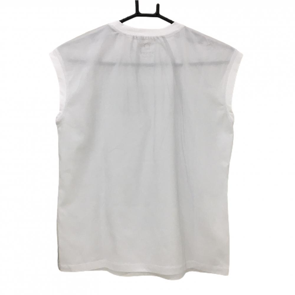 【超美品】ヘンリークラブ ノースリーブハイネックシャツ 白 メッシュ フロントロゴ レディース 40 ゴルフウェア HENRY CLUB