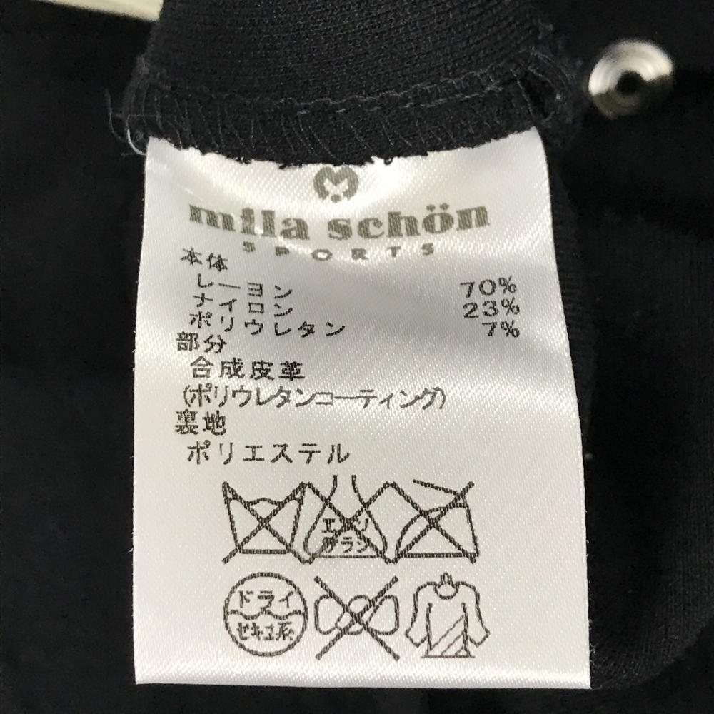 【美品】ミラショーンスポーツ キュロットスカート 黒 異素材切り替え 前面合皮部分取外し可 レディース 9 ゴルフウェア mila schon sports