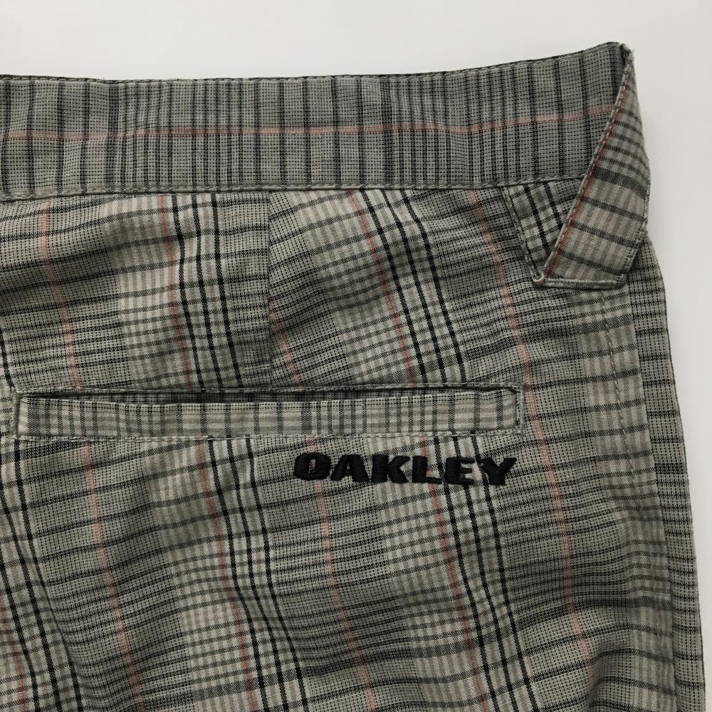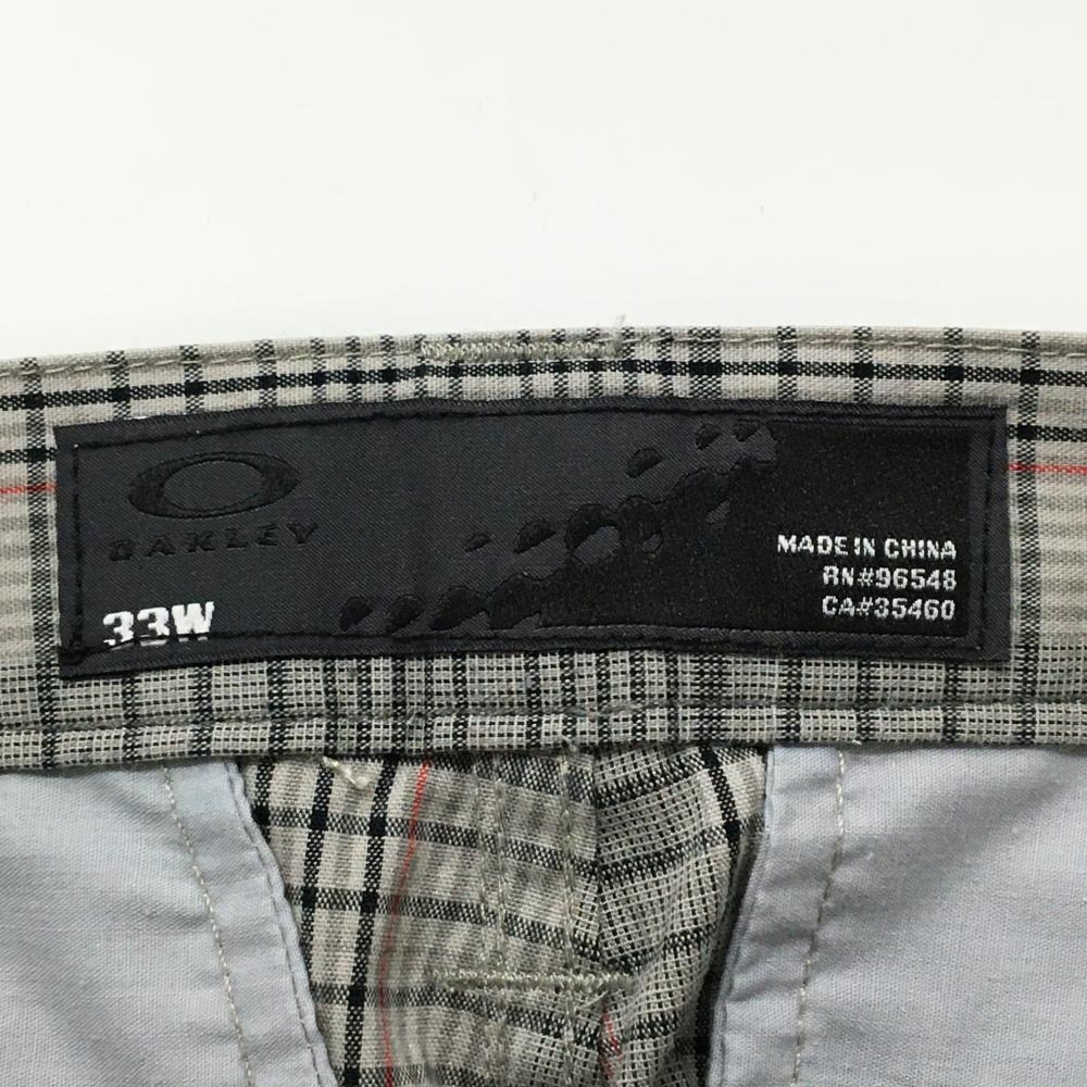 オークリー パンツ グレー×レッド×黒 チェック ロゴ刺しゅう メンズ 33W ゴルフウェア Oakley
