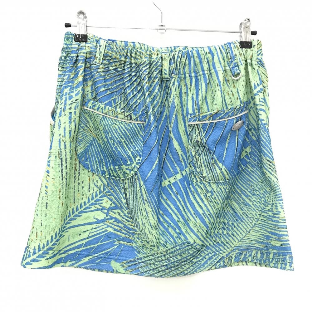 【美品】ヒールクリーク スカート ライトグリーン×ライトブルー 総柄 凹凸素材 レディース 42(L) ゴルフウェア Heal Creek