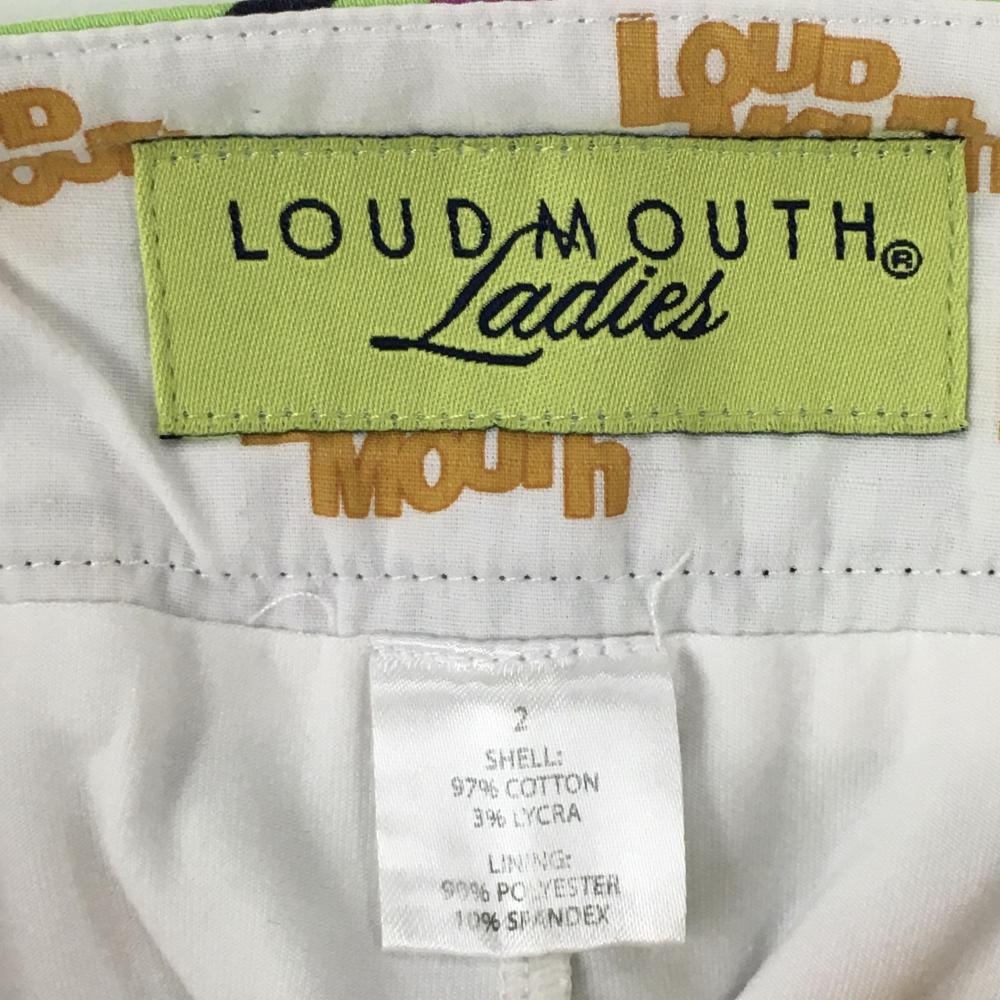 ラウドマウス スカート パープル×ライトグリーン 総柄 ロゴ刺しゅう インナーパンツ付 レディース 2(L) ゴルフウェア LOUDMOUTH