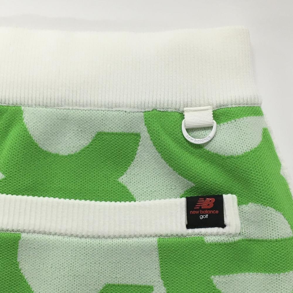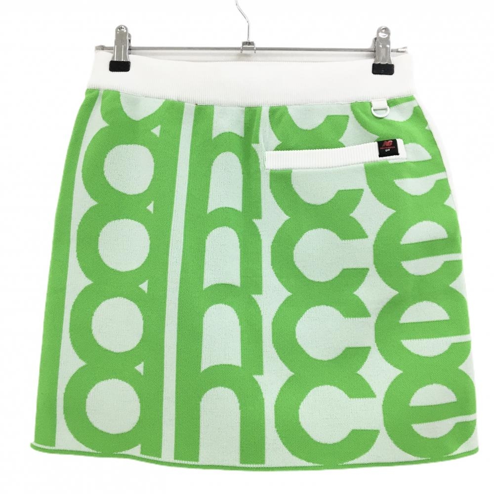 【超美品】ニューバランスゴルフ ニットスカート 白×ライトグリーン ロゴ総柄 ストレッチ 軽量 レディース 1(M) ゴルフウェア New Balance