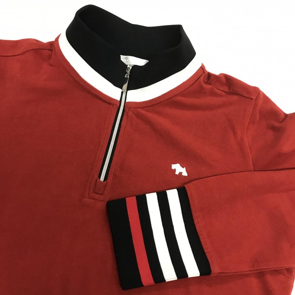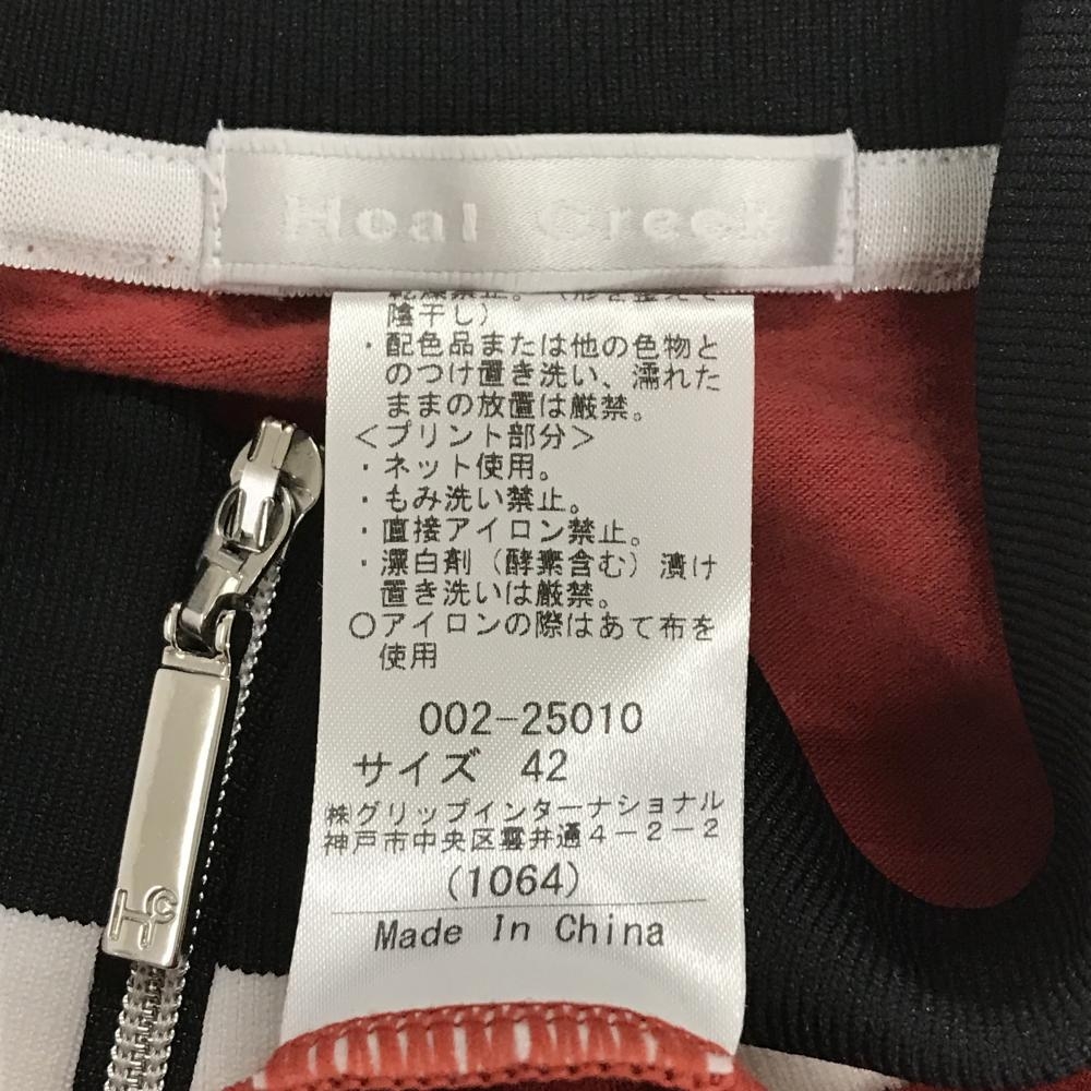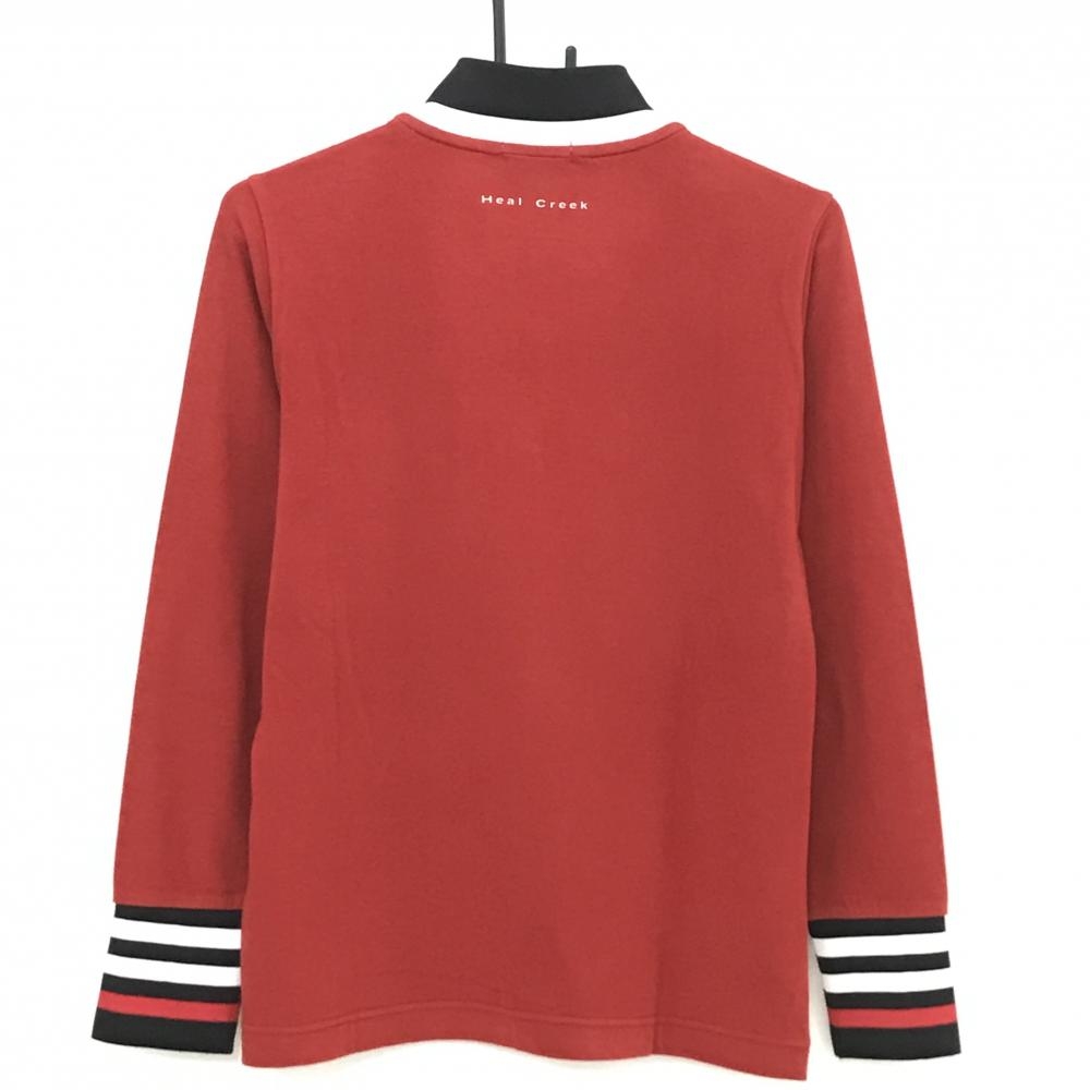 【美品】ヒールクリーク 長袖ハイネックシャツ レッド×黒 ハーフジップ 表微起毛 袖口ライン レディース 42(L) ゴルフウェア Heal Creek